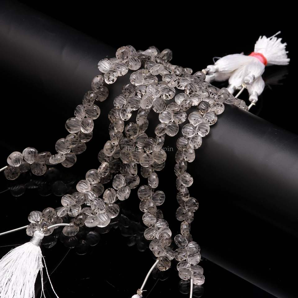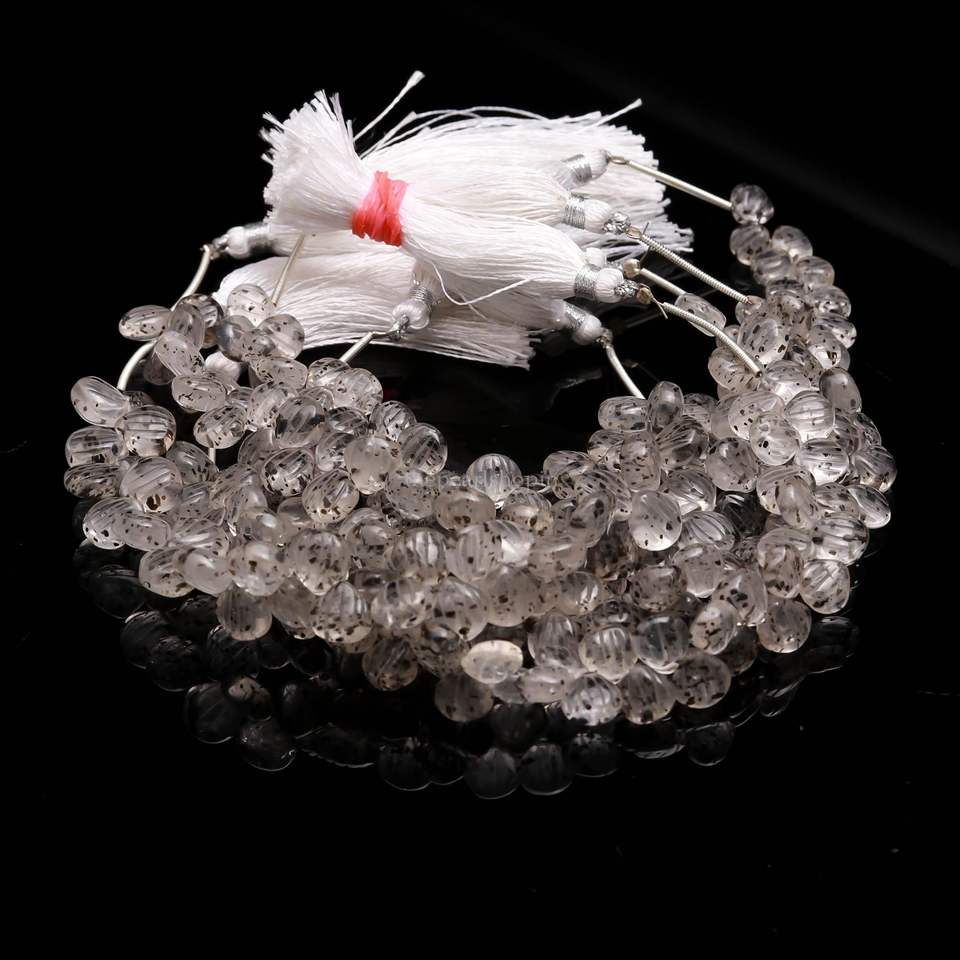 ลูกปัดหินควอตซ์ลายจุดธรรมชาติแกะสลักจากเปลือกหอยเจาะรูด้านข้างขนาด 9-10 มม. ลูกปัดควอตซ์ลายจุดแกะสลักด้วยมือสำหรับทำเครื่องประดับขายส่ง