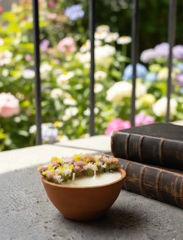 เทียนหอมกลิ่นดอกไม้แห้งธรรมชาติในกระถางดินเหนียว ขี้ผึ้งถั่วเหลือง ดอกไม้แห้งออร์แกนิก สไตล์หรูหรา สำหรับเทศกาลขอบคุณพระเจ้า อีสเตอร์ ขายส่ง