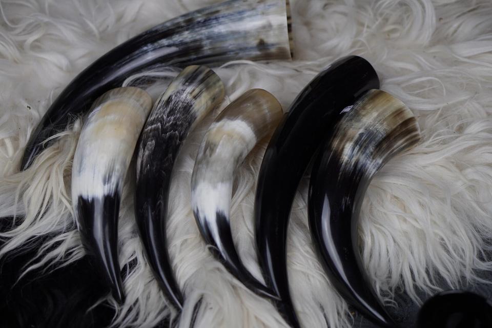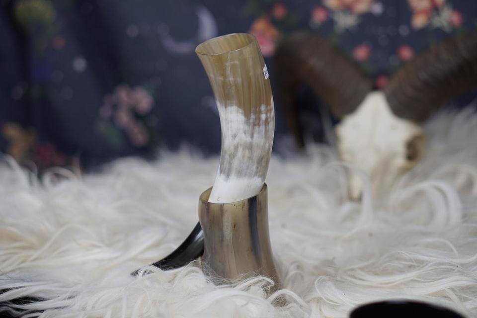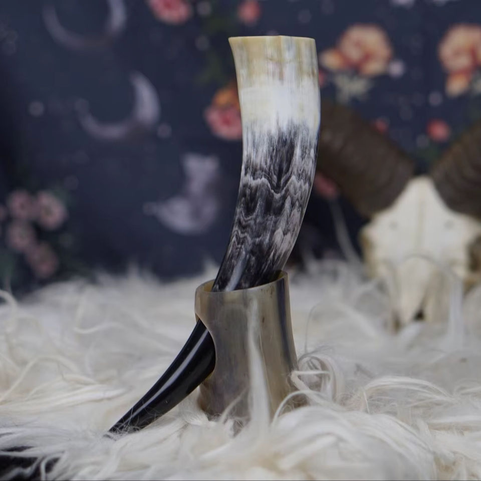 แตรสำหรับดื่มไวกิ้งทำจากธรรมชาติเป็นมิตรต่อสิ่งแวดล้อมดีไซน์รูปสัตว์รูปควาย