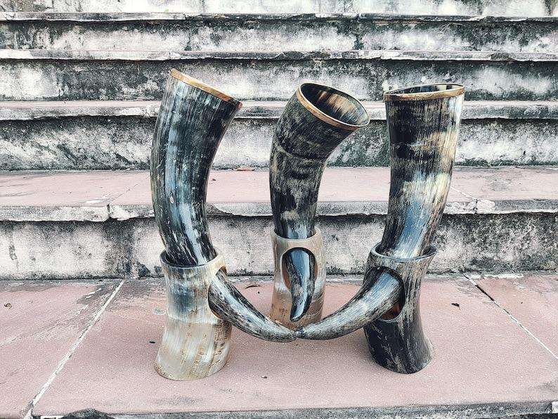 Natural Drinking Horn Viking With Horn Stand And Brass Golden Molding High Quality