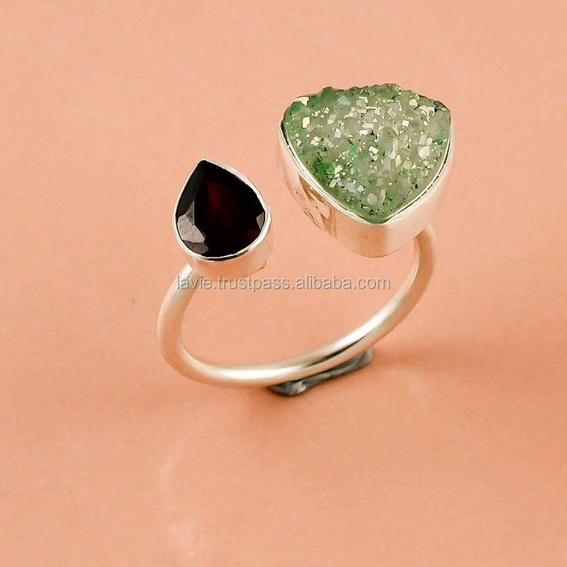 แหวนโกเมนเหลี่ยมธรรมชาติ ดรูซี่ เครื่องประดับทํามือ ขายส่งเครื่องประดับชั้นดี ผู้ผลิตแหวนเครื่องประดับเงินแท้ 925