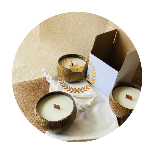 เทียนหอมมะพร้าวธรรมชาติเป็นมิตรกับสิ่งแวดล้อมเทียนหอมในกะลามะพร้าวขายส่งจาก takimex เวียดนาม