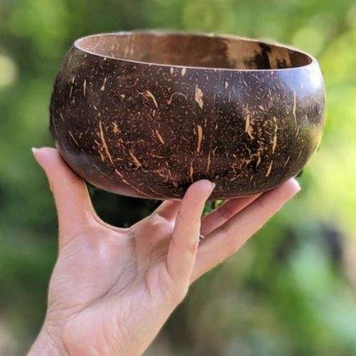 ชามกะลามะพร้าวธรรมชาติเป็นมิตรกับสิ่งแวดล้อมพร้อมดีไซน์แกะสลักจากเวียดนาม