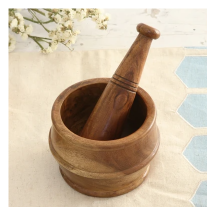 Natural Eco Kitchen Spice Herb Crusher 30 Wooden Mortar Pestle Manual Grinder Hand Wash Only