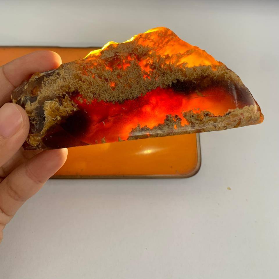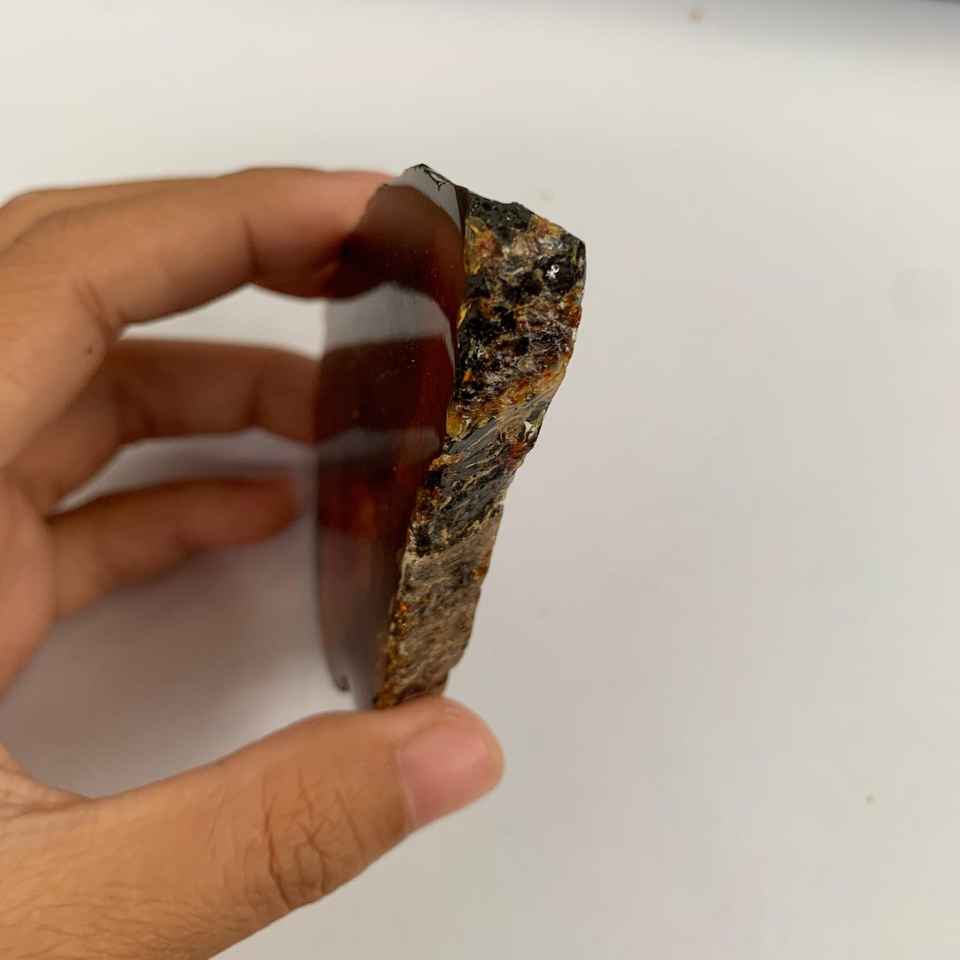 แผ่นอำพันสุมาตราสีน้ำตาลขัดเงาขนาด 8-10 ซม. แบบธรรมชาติ คริสตัลธรรมชาติ หินธรรมชาติ