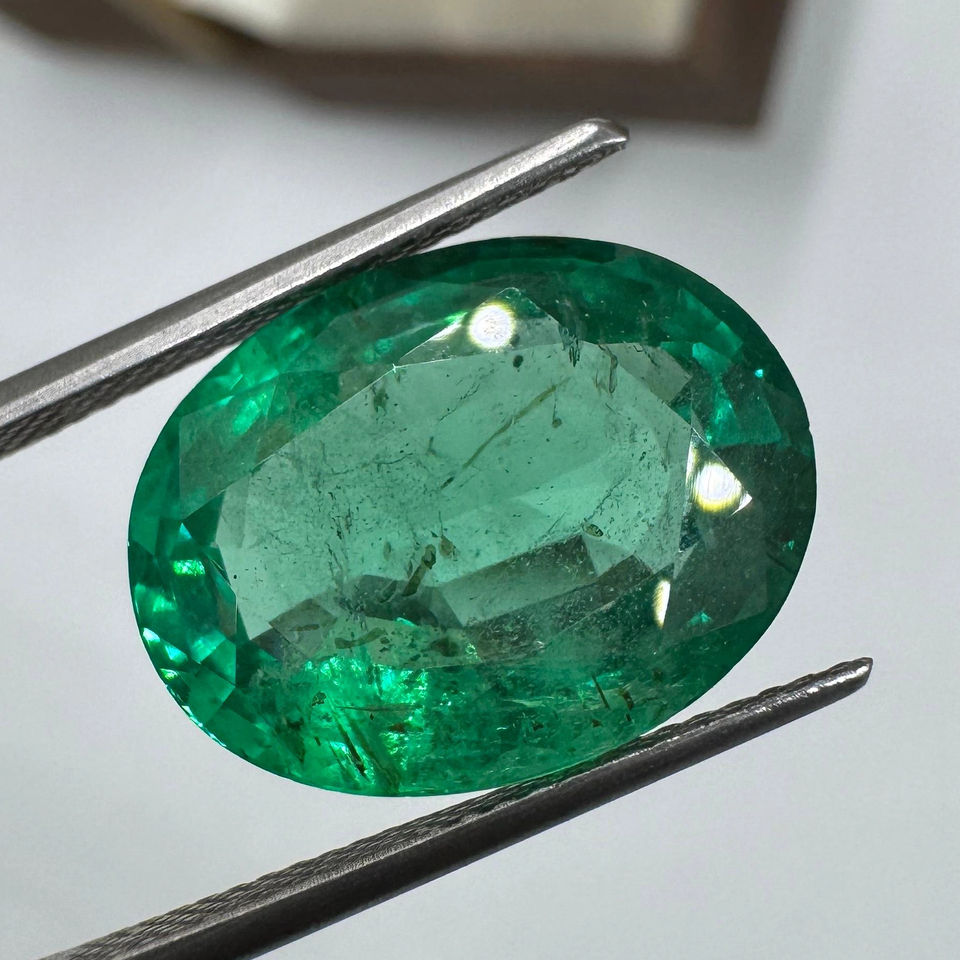 มรกตธรรมชาติ8-9กะรัตสีเขียวรูปไข่ตัดเหลี่ยมเพชรพลอยหลวมเล็กน้อยรวมอัญมณีหายาก