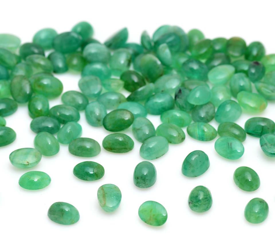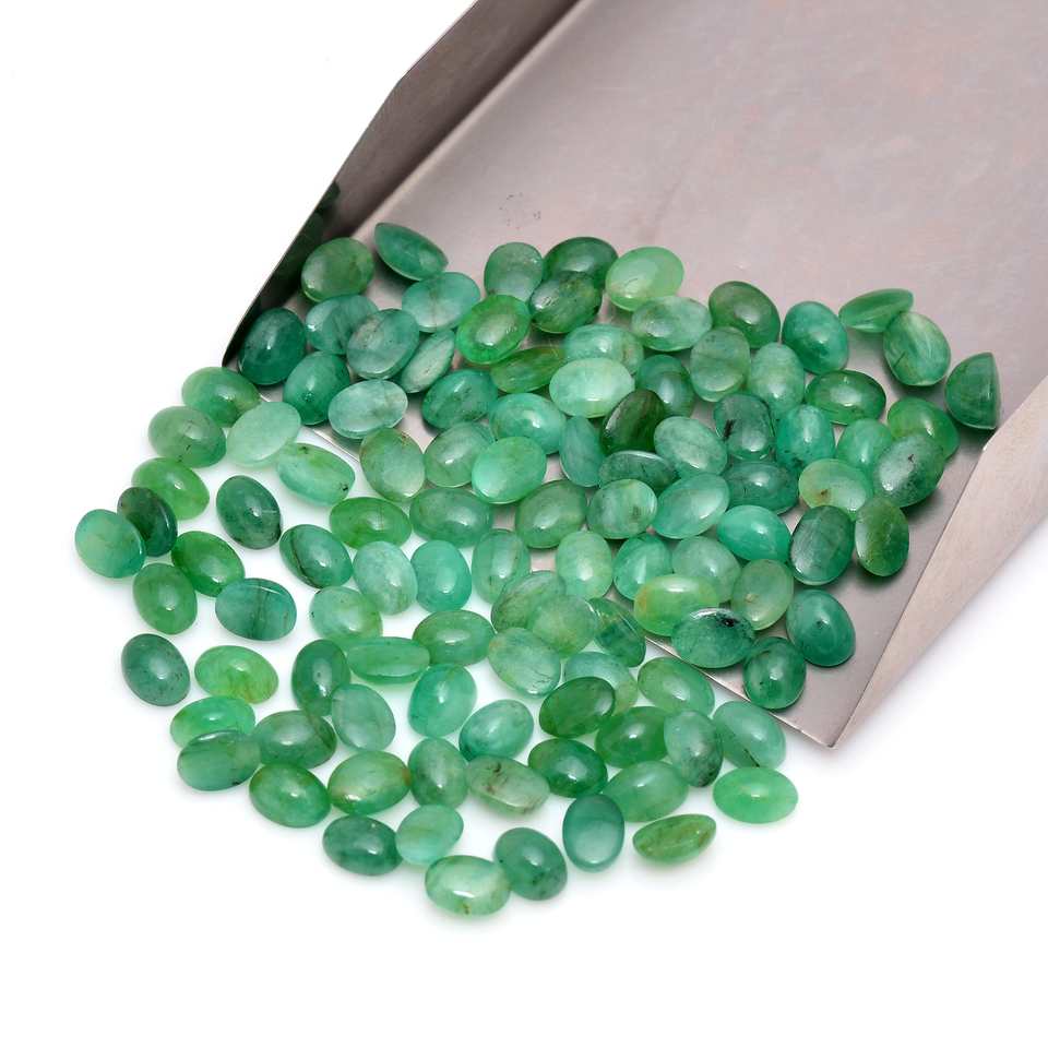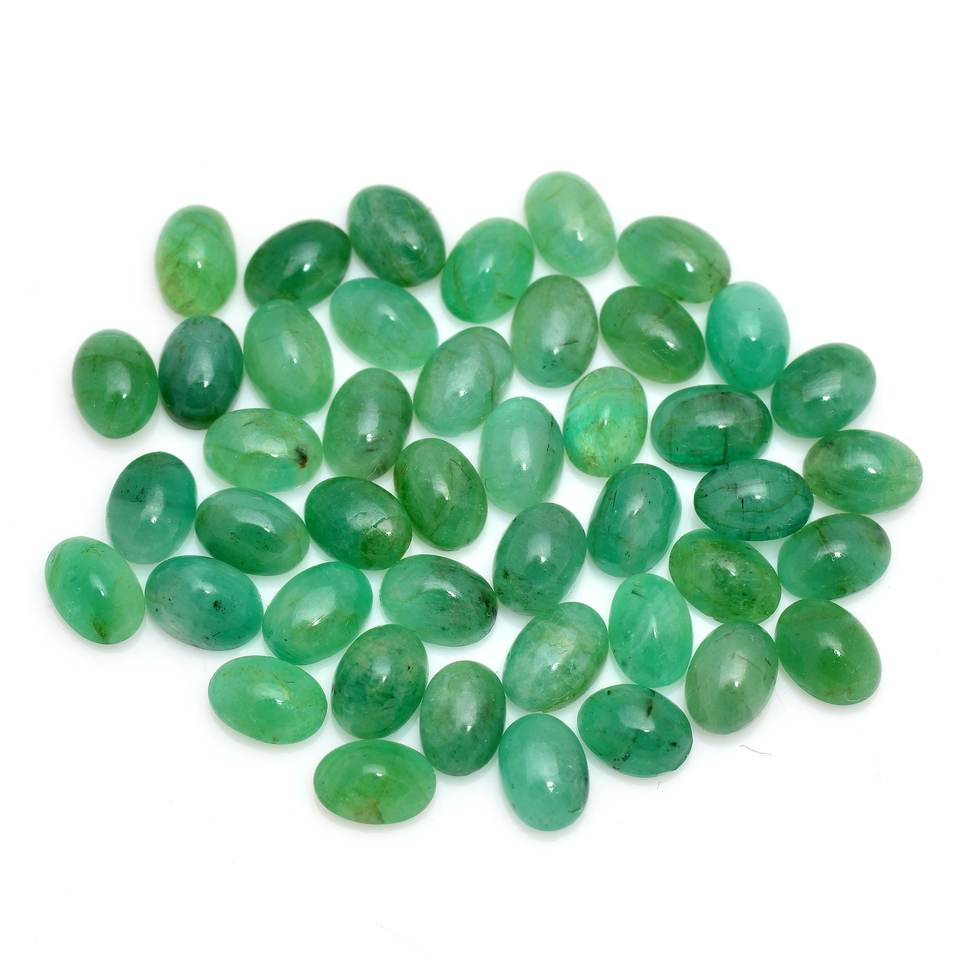 พลอยอัญมณีทรงวงรีทรงรีสีเขียวมรกตขนาดปรับเทียบได้สำหรับการทำเครื่องประดับและโหราศาสตร์