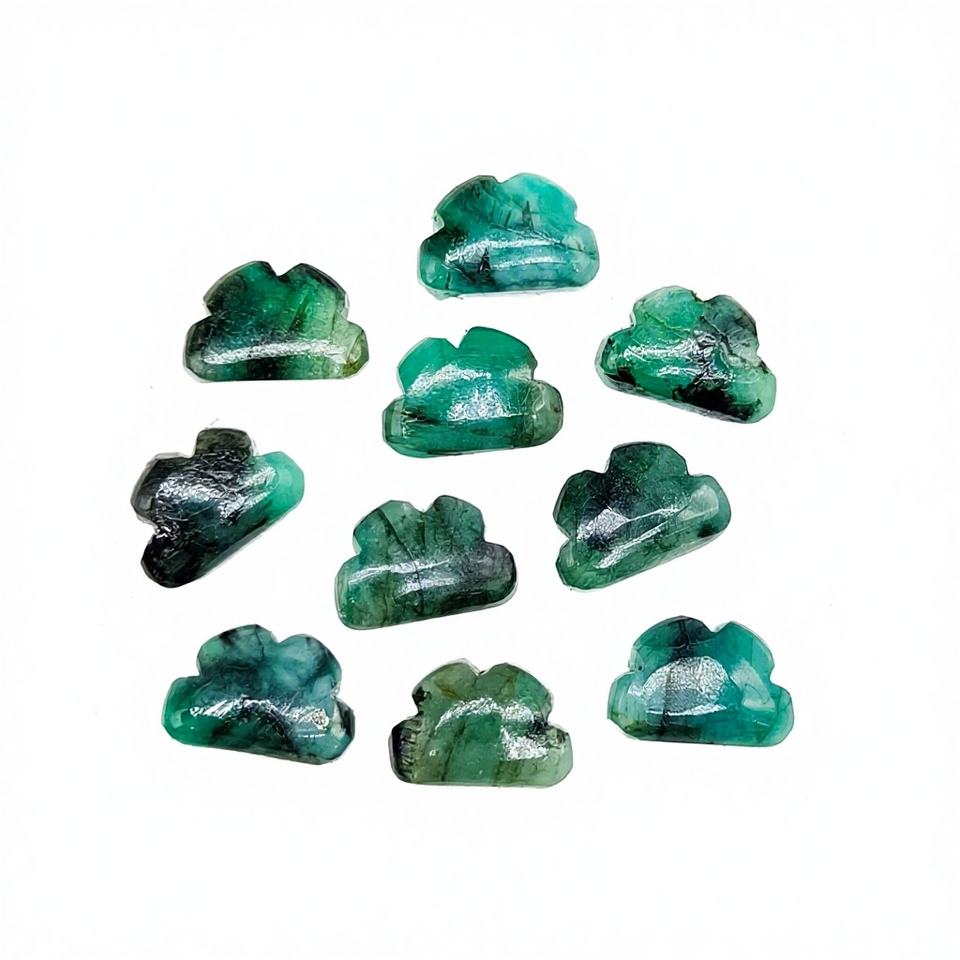 ลูกปัดพลอยมรกตธรรมชาติรูปทรงเมฆแกะสลักด้วยมือ ลูกปัดพลอยมรกตแกะสลักสำหรับทำเครื่องประดับ คริสตัลขนาดใหญ่ 8x12 มม.