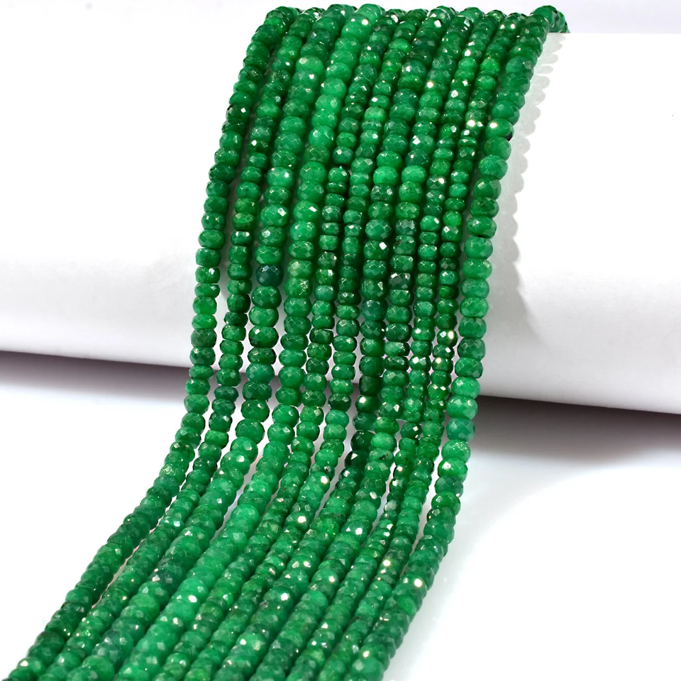 ลูกปัดทรงรอนเดลเหลี่ยมเพชรพลอยมรกตคอรันดัม