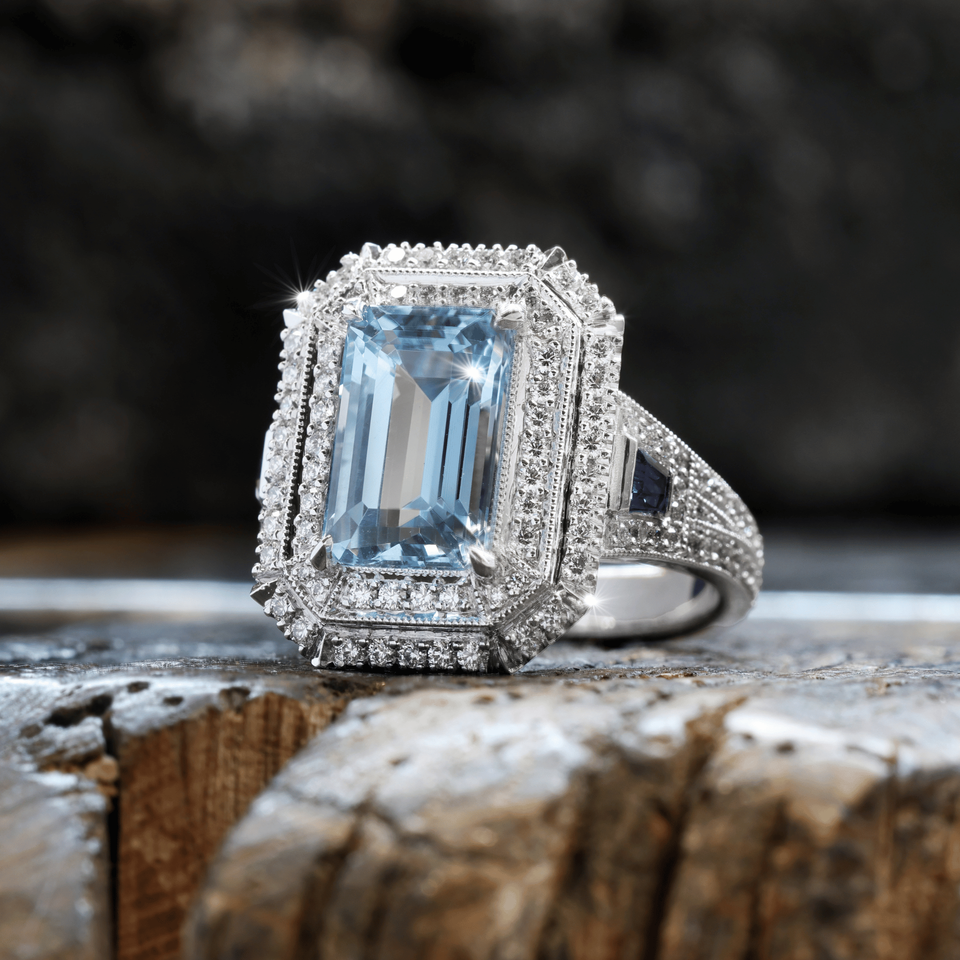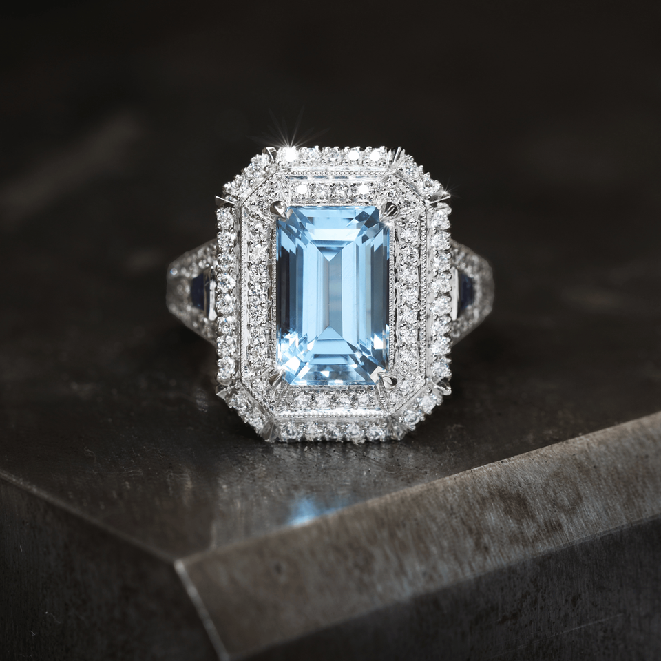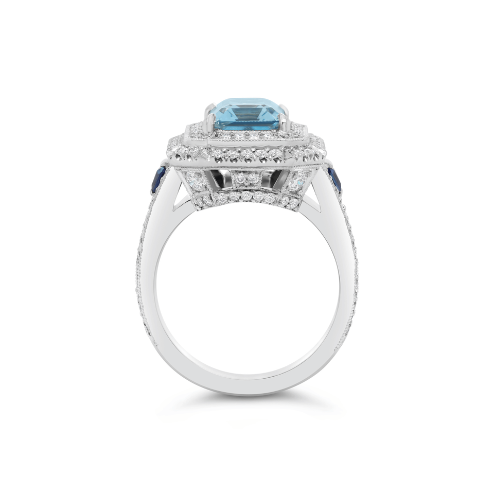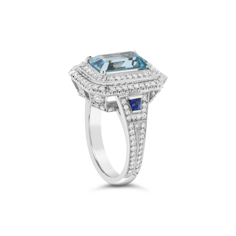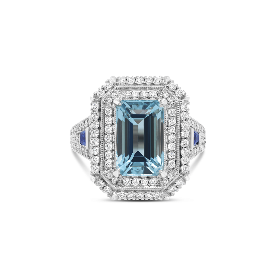 แหวนอะความารีน แซฟไฟร์ และเพชร