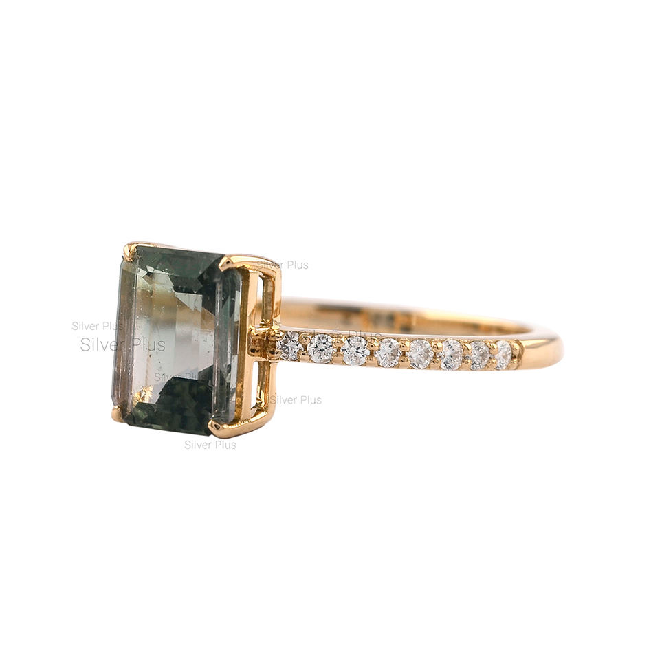 แหวนพลอยทัวร์มาลีนแตงโมตัดมรกตธรรมชาติ14K แหวนทองสีเหลืองทอง10K/18K