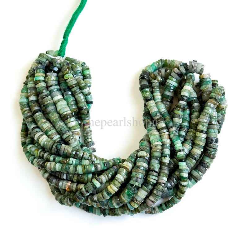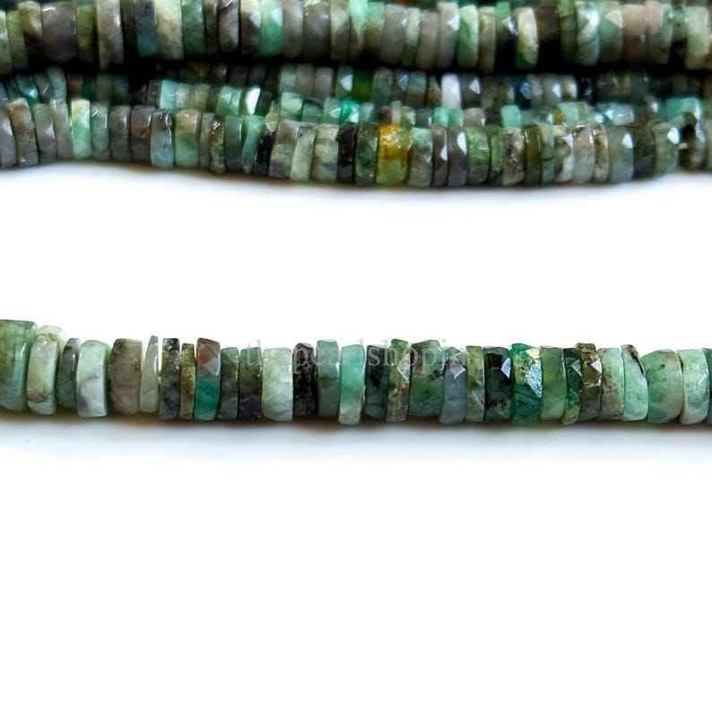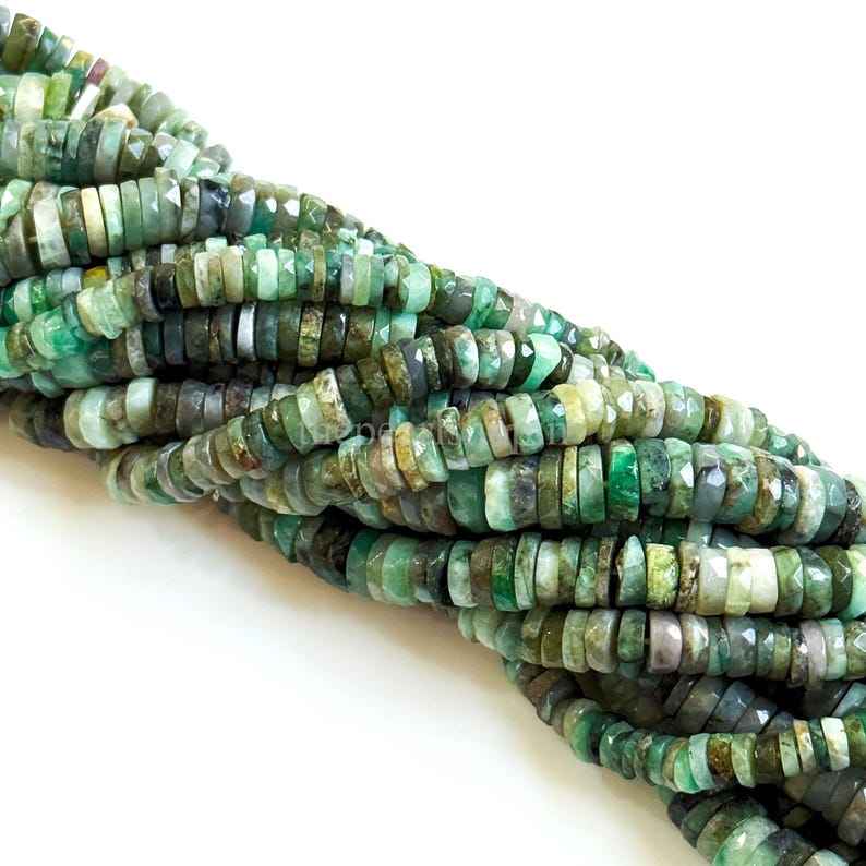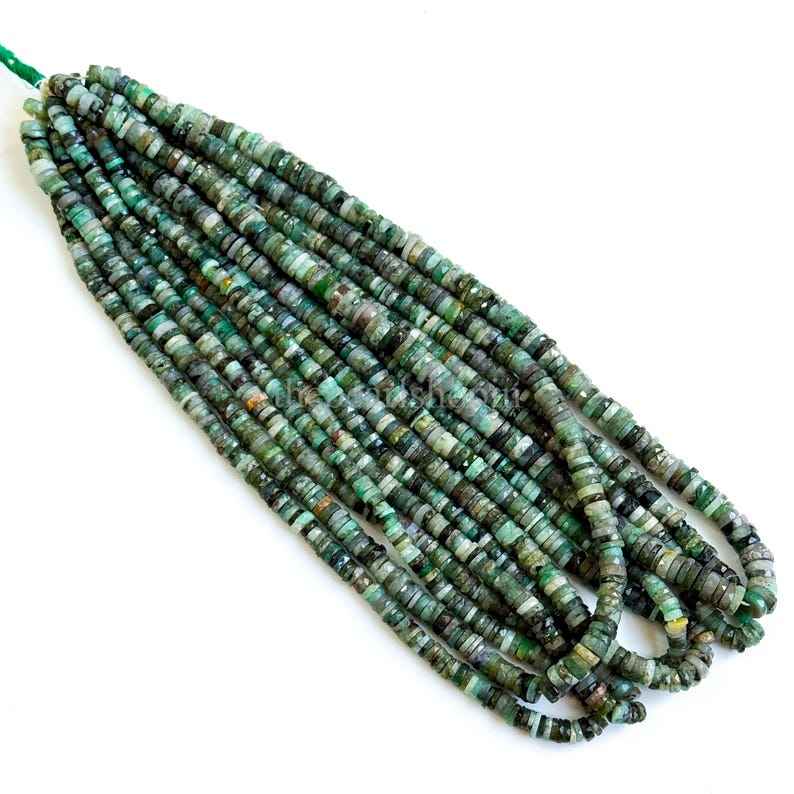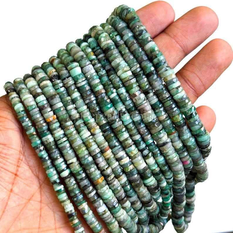 ลูกปัดมรกตธรรมชาติทรงเหลี่ยมขนาด 5-6 มม. ลูกปัดมรกตทรงดิสก์แบบล้อ ขนาด 16 นิ้ว สำหรับทำเครื่องประดับ