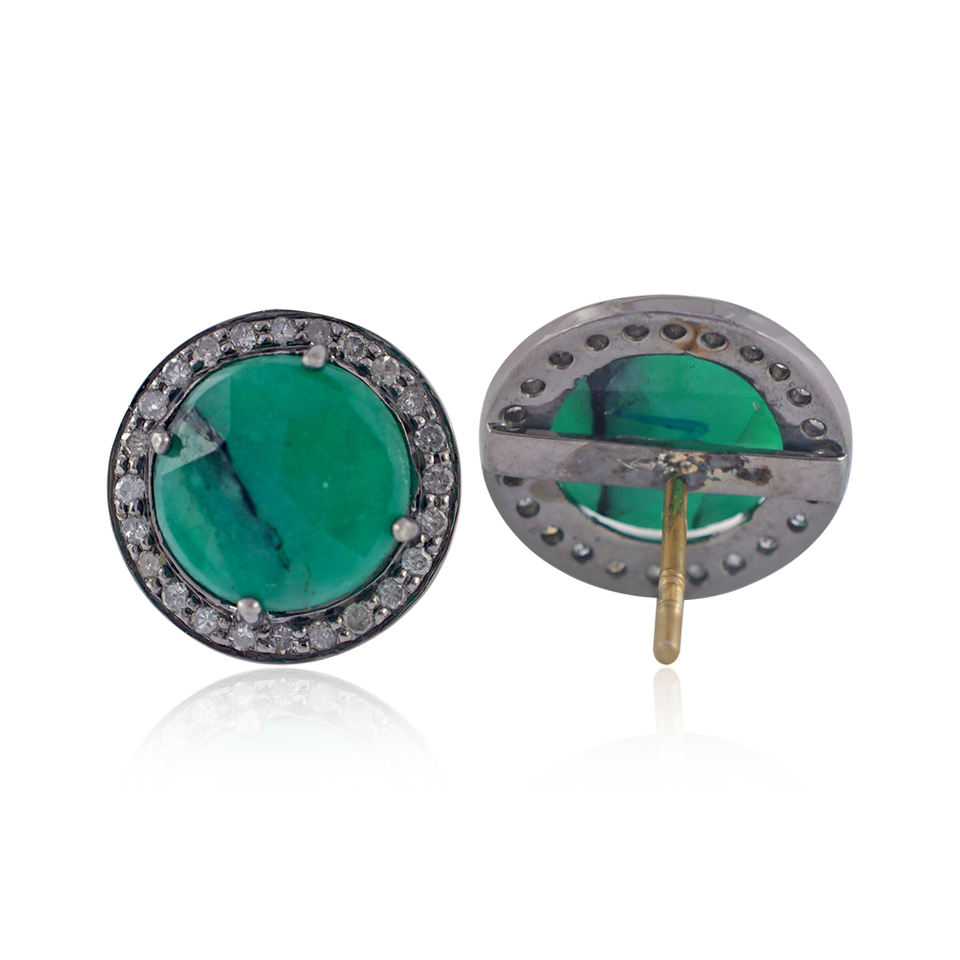 มรกตธรรมชาติพลอยสายเดียวปูเพชรออกแบบ15มิลลิเมตรรอบผลักดันกลับ925ต่างหูเงินเครื่องประดับขายส่ง