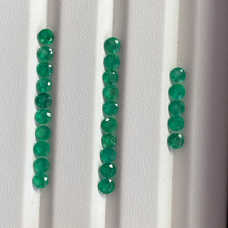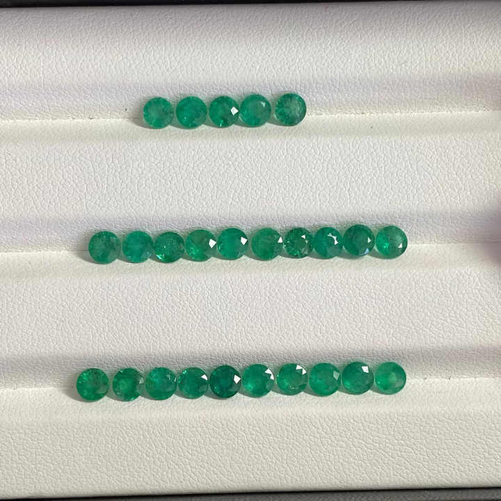 มรกตสีเขียวธรรมชาติ ขนาด 1.5 มม. ถึง 3 มม. ทรงกลม ผ่านการรับรองจากผู้ตรวจสอบอิสระ สำหรับทำเครื่องประดับ พร้อมประกายรุ้งสวยงาม คุณภาพเยี่ยม แหล่งกำเนิด ZM