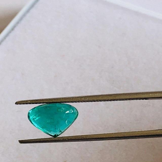 มรกตธรรมชาติทรงหัวใจ 7.4x6.6 มม. ต้นกำเนิดจากแซมเบีย คุณภาพ AAA พร้อมความเงางามระดับ AAA และสีเขียวสวยงาม ใช้สำหรับทำเครื่องประดับ
