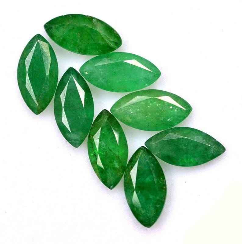 มรกตธรรมชาติทรงมาร์คีส์เจียระไนแบบเหลี่ยม ขนาดมาตรฐาน ไม่ผ่านการปรับแต่ง พร้อมใบรับรอง ล็อตเม็ดพลอยสำหรับทำเครื่องประดับ
