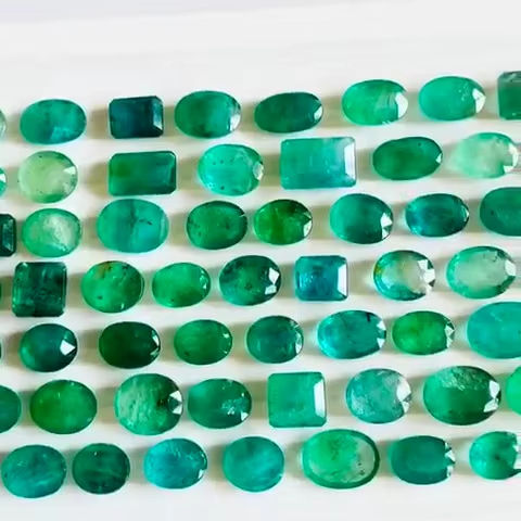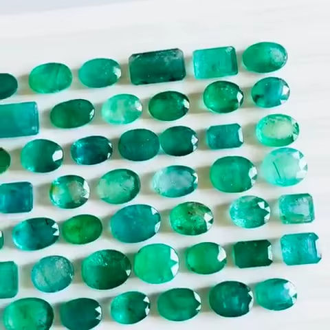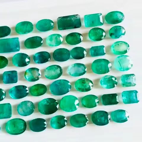 พลอยสีเขียวมรกตตัดแบบธรรมชาติ81ชิ้นต้นกำเนิดแซมเบีย