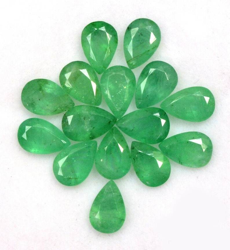 พลอยมรกตทรงลูกแพร์เจียระไนแบบธรรมชาติ ขนาดมาตรฐาน ไม่ผ่านการปรับแต่ง พร้อมใบรับรอง ล็อตเม็ดพลอยสำหรับทำเครื่องประดับ