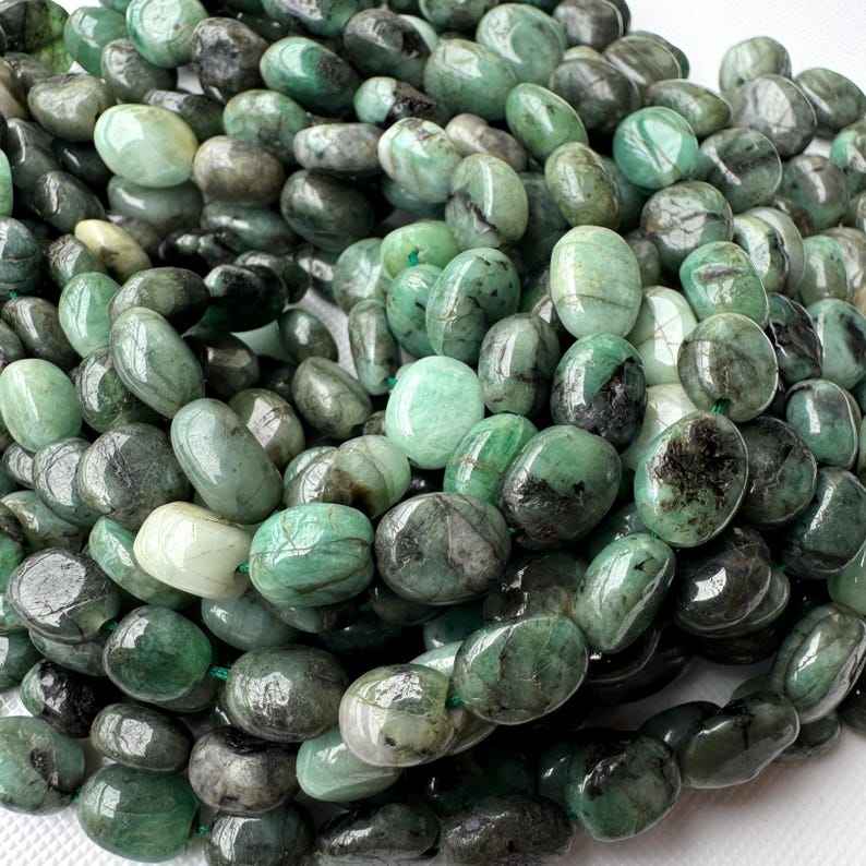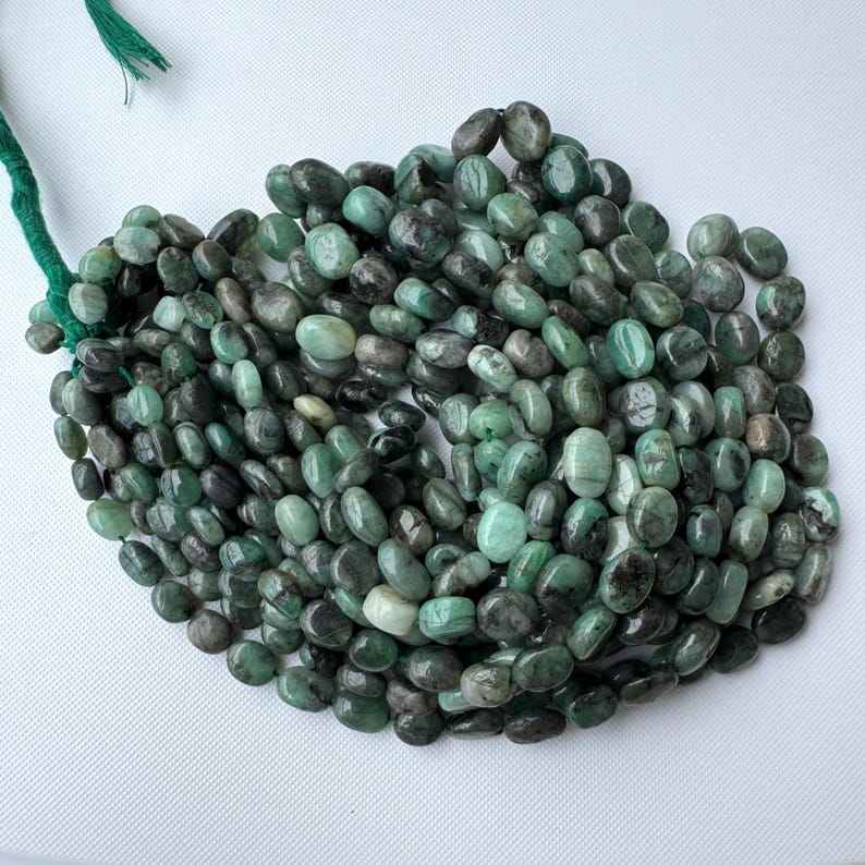ลูกปัดมรกตธรรมชาติทรงรีขัดเรียบ สีเขียวมรกต สำหรับทำเครื่องประดับ