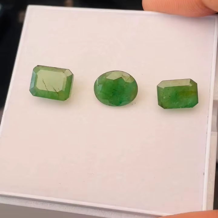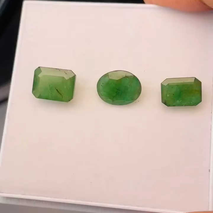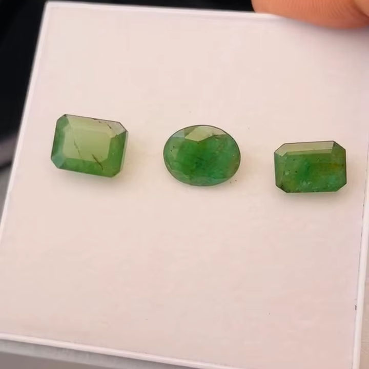 มรกตธรรมชาติจากแซมเบีย 3 เม็ด น้ำหนัก 12.04 กะรัต คุณภาพดี พร้อมความเงางามและสีเขียวสวยงาม ขัดเงาอย่างสมบูรณ์แบบ เหมาะสำหรับทำเครื่องประดับ