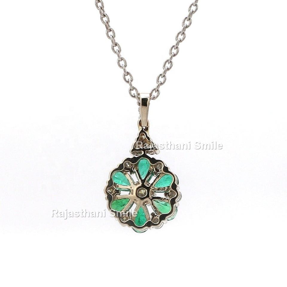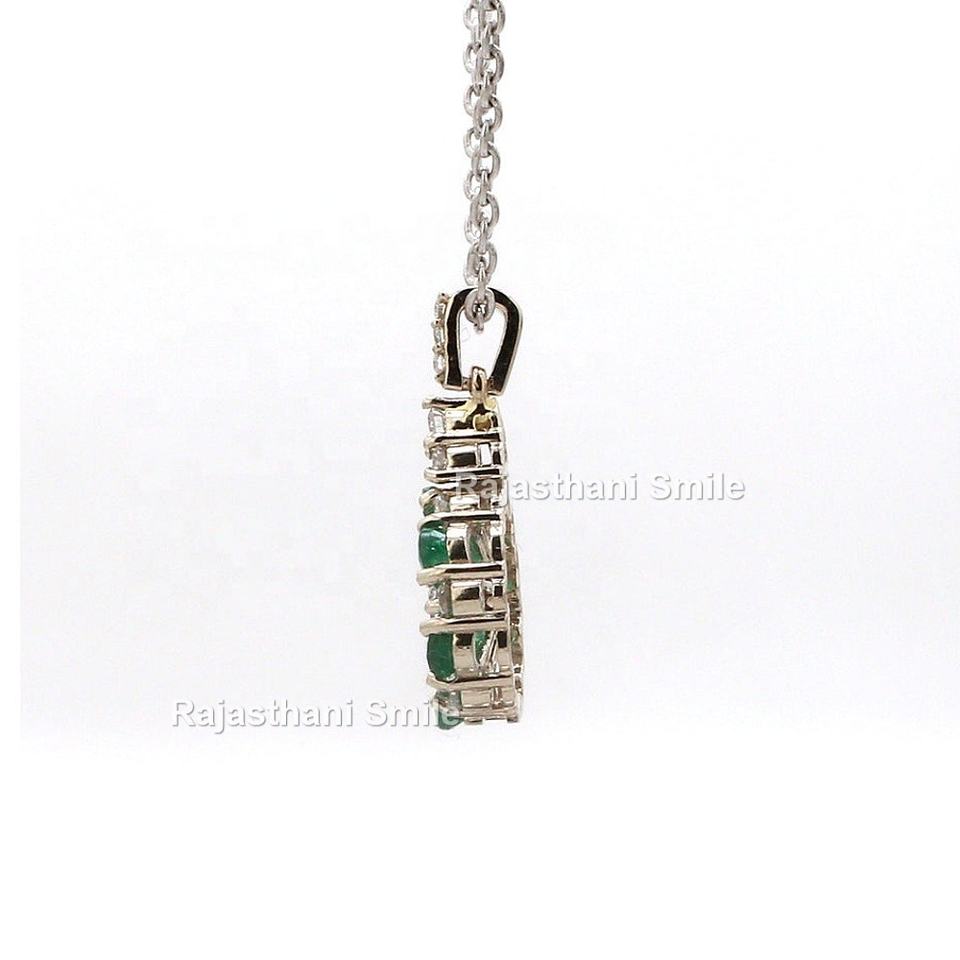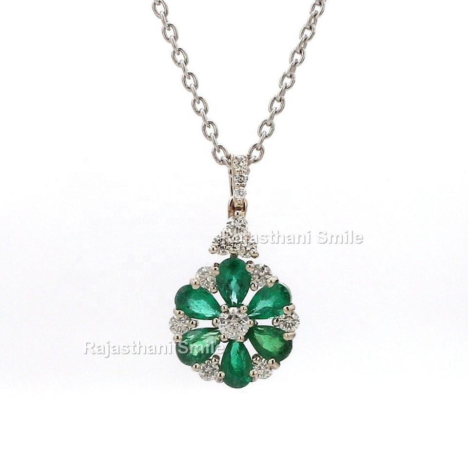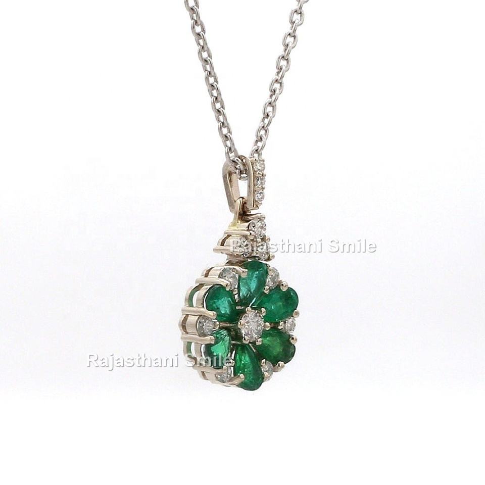 จี้ทองคำขาวแท้ 14K ประดับมรกตธรรมชาติและเพชรทรงลูกแพร์ ขนาด 6 x 4 มม. ดีไซน์ลายดอกไม้ สำหรับงานหมั้น