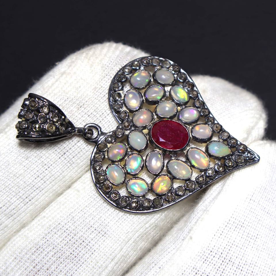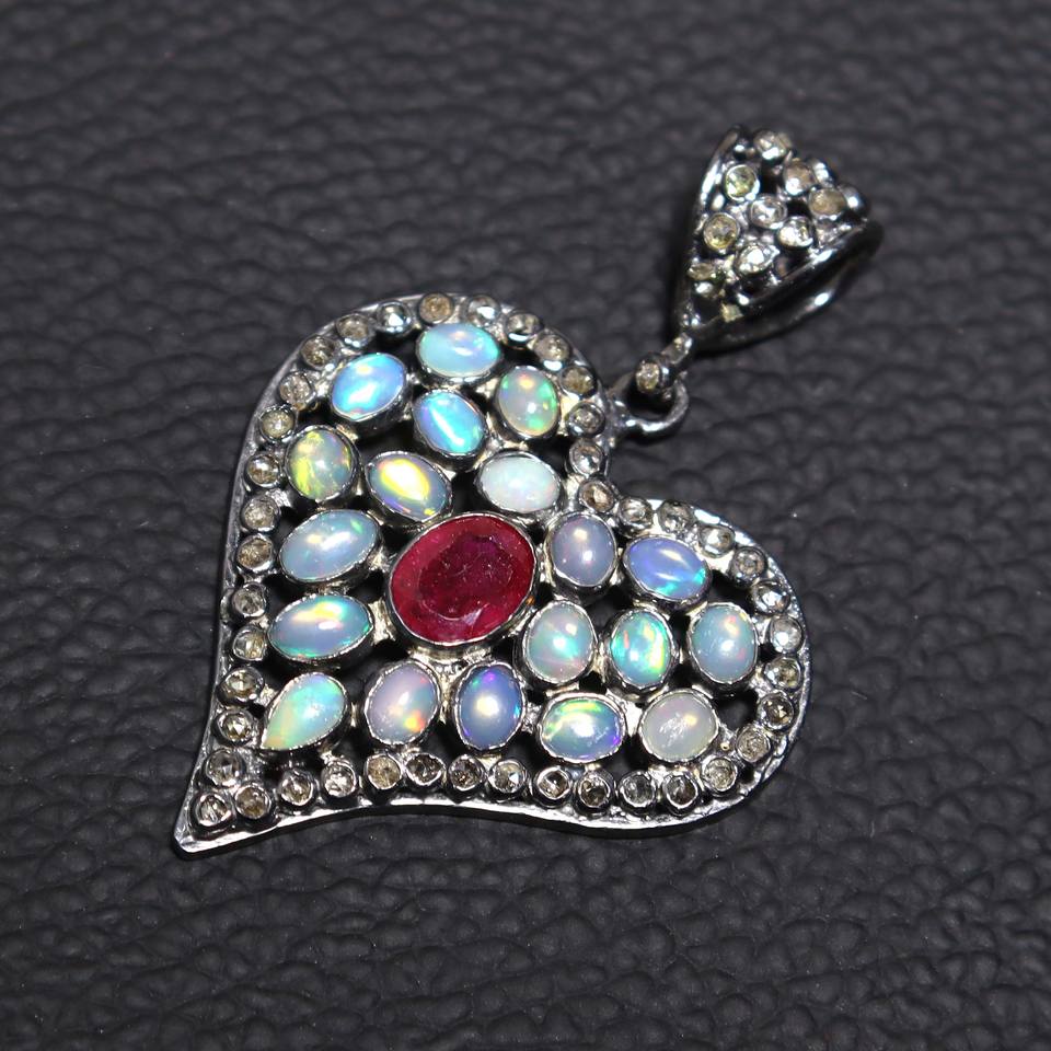จี้เพชรอัญมณีโอปอลโกเมนธรรมชาติทำด้วยมือดีไซน์วินเทจทำ925เงินสเตอร์ลิง