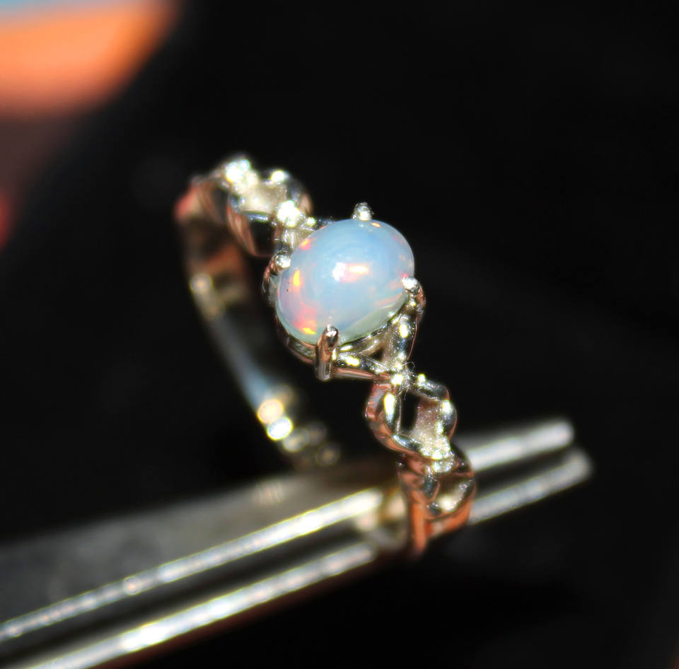 แหวนเงินแท้ 925 ชุบโรเดียม ประดับพลอยธรรมชาติจากเอธิโอเปีย ดีไซน์ศาสนา