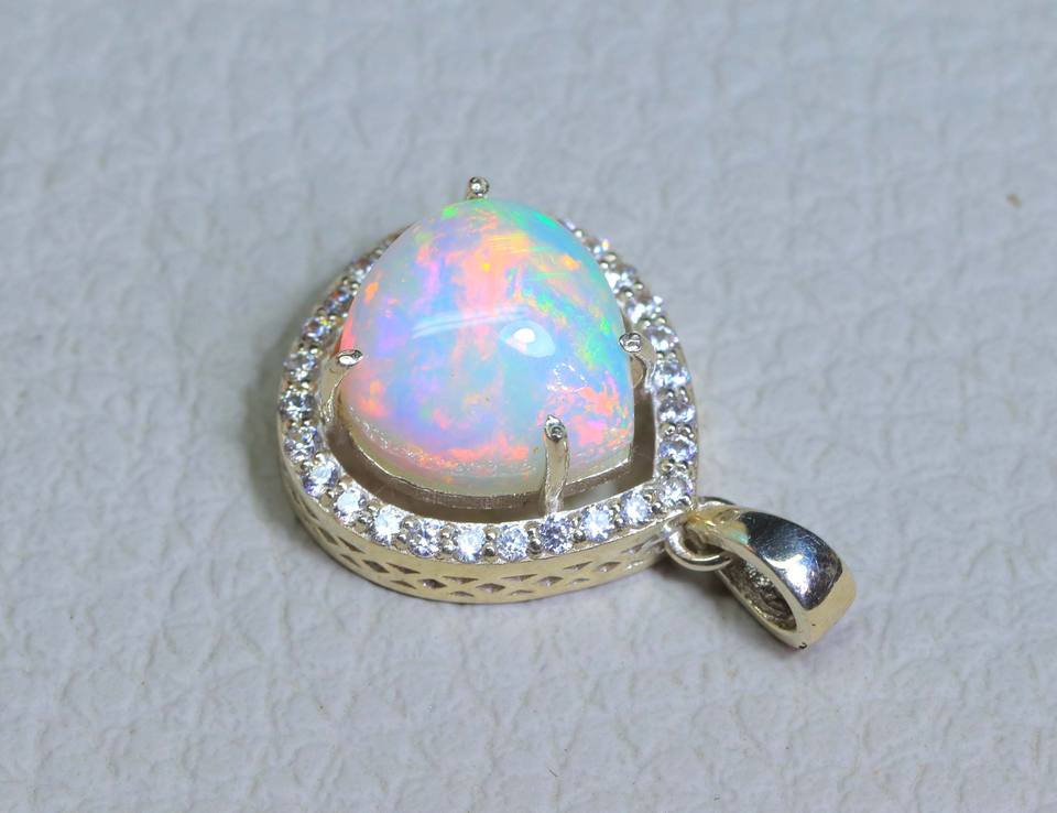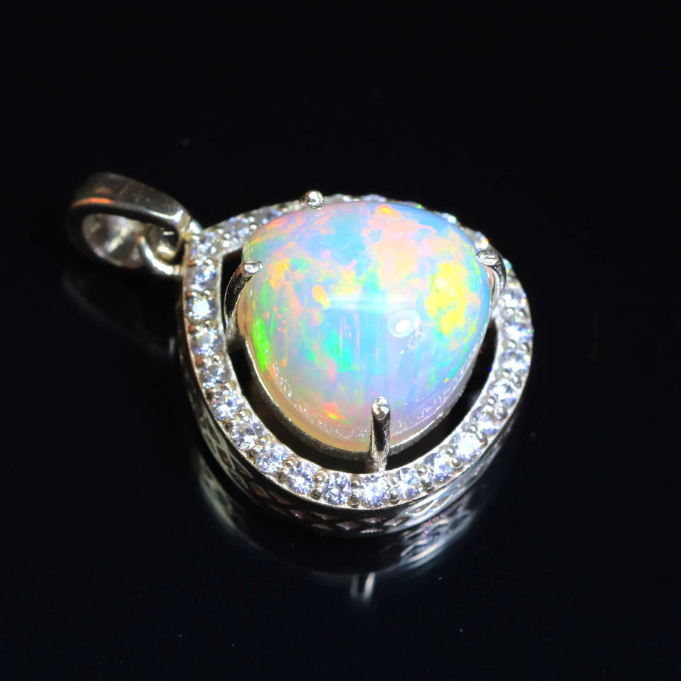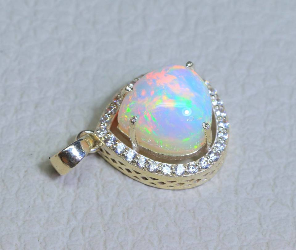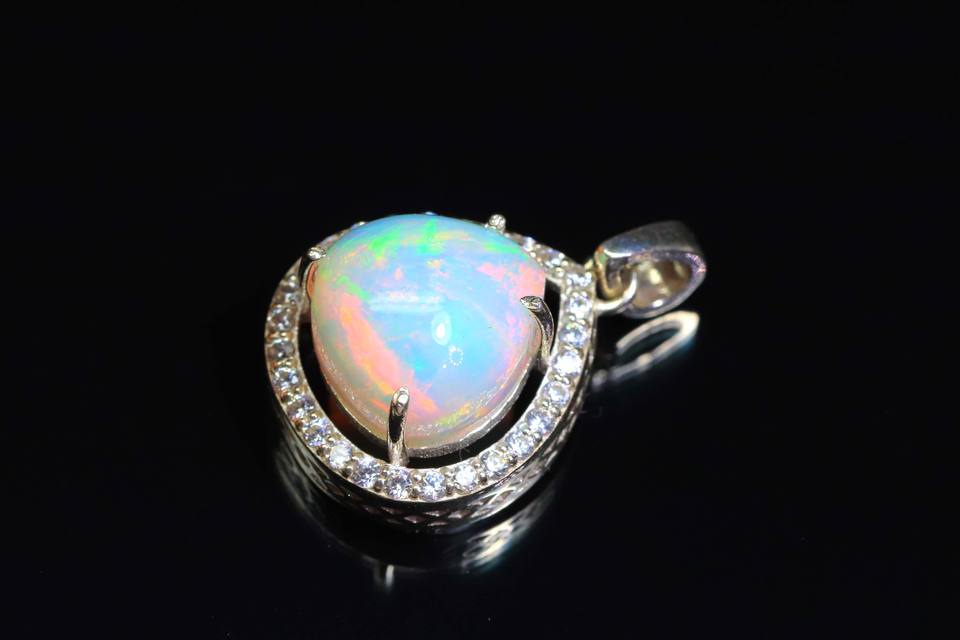 โอปอลเอธิโอเปียนธรรมชาติ925เงินสเตอร์ลิงจี้รูปทรงลูกแพร์ขัดเงาเรียบเวลโอปอล