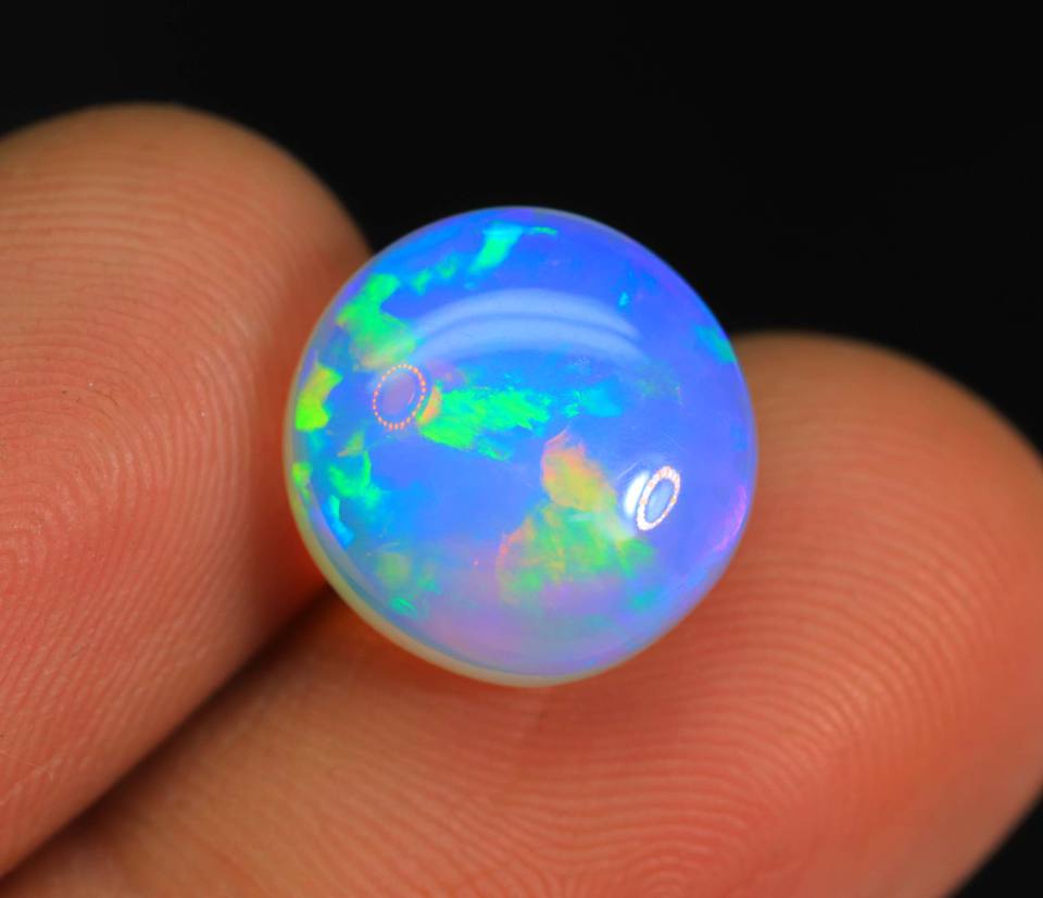 อัญมณีโอปอลทรงหลังเบี้ยของชาวเอธิโอเปียธรรมชาติสีฟ้าประกายแวววาวสีรุ้งแวววาวอัญมณีโอปอลเอธิโอเปียนหลวมของขวัญสำหรับเธอ