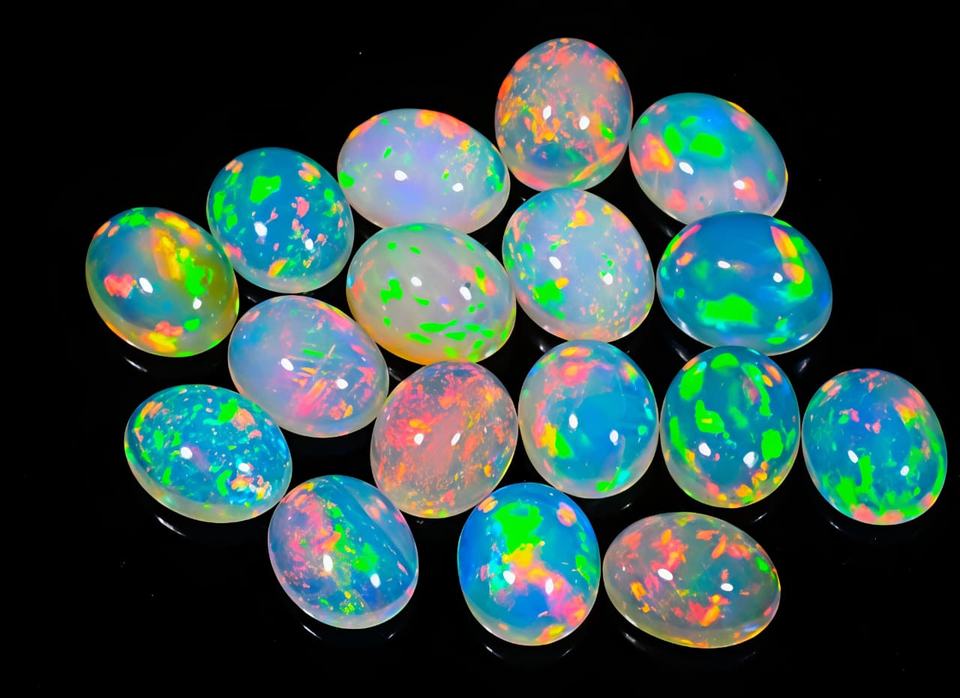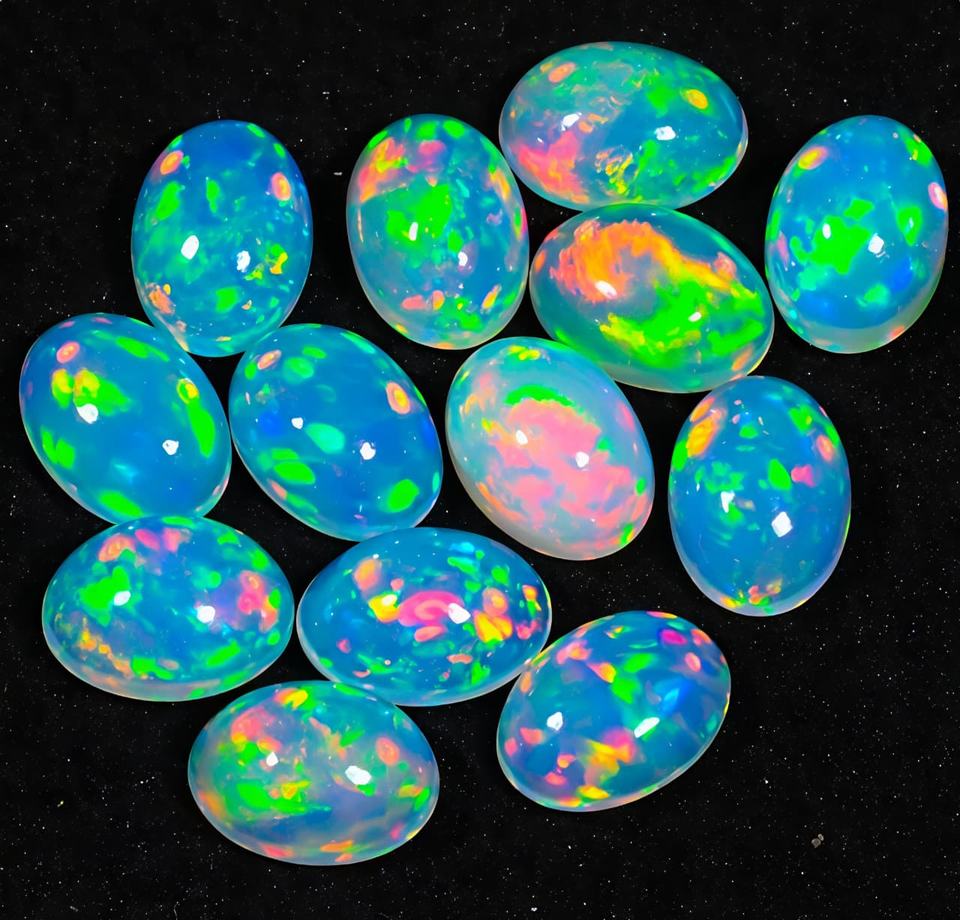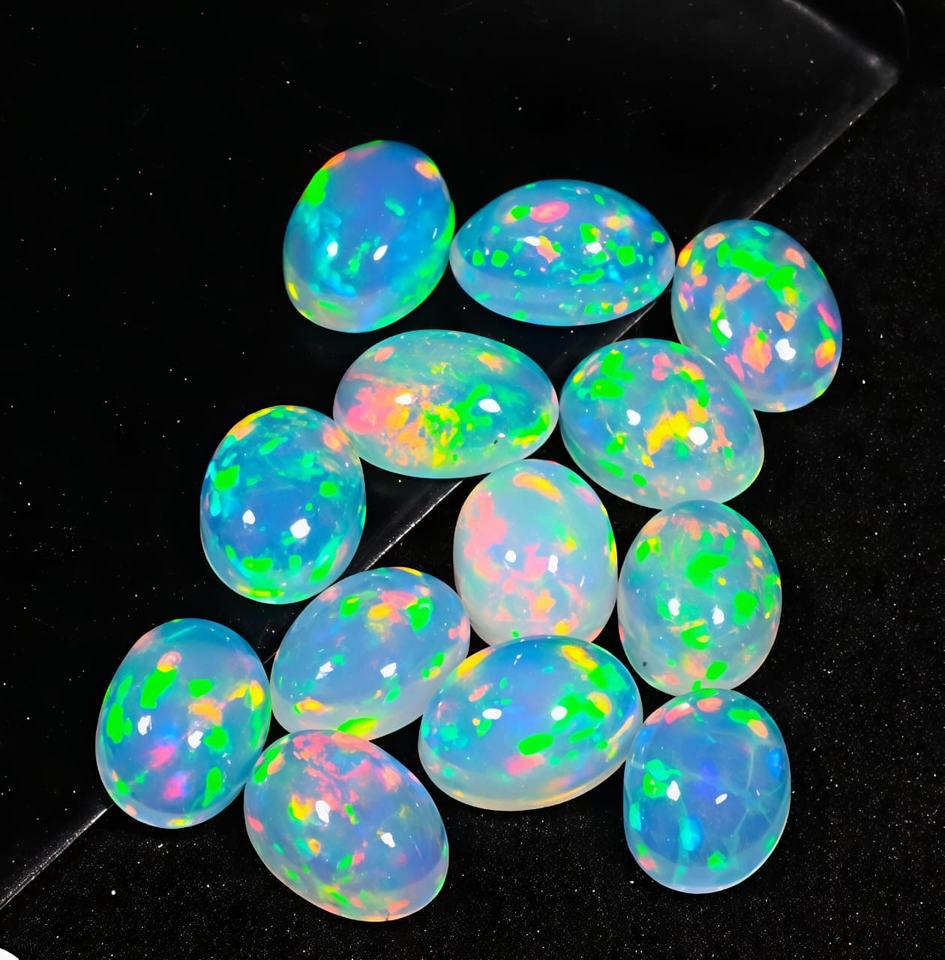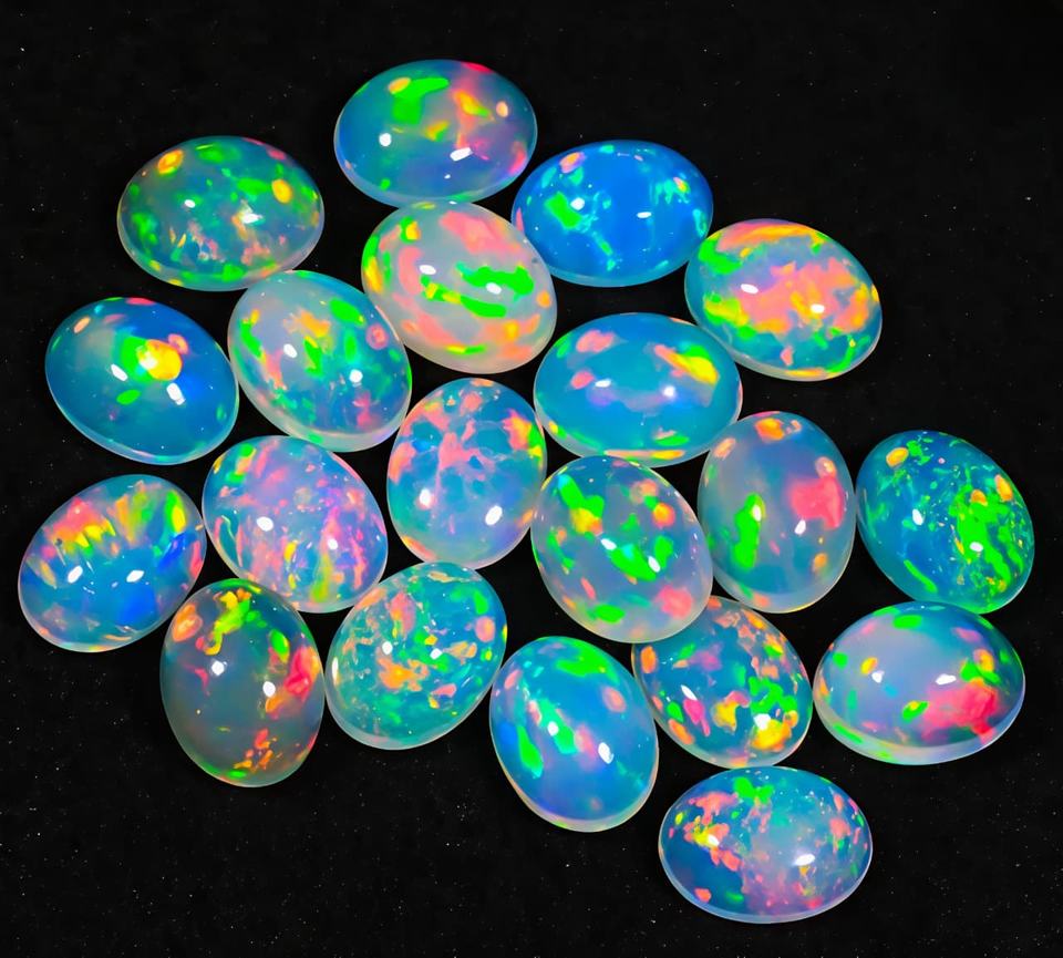 อัญมณีโอปอลทรงหลังเบี้ยโอปอลอัญมณีทรงวงรีหินโอปอลอัญมณีสีรุ้งแบบหลวมเรียบเรียบสีขายส่ง