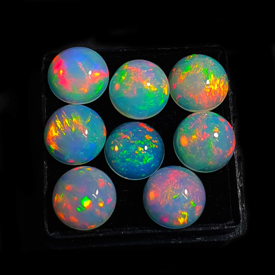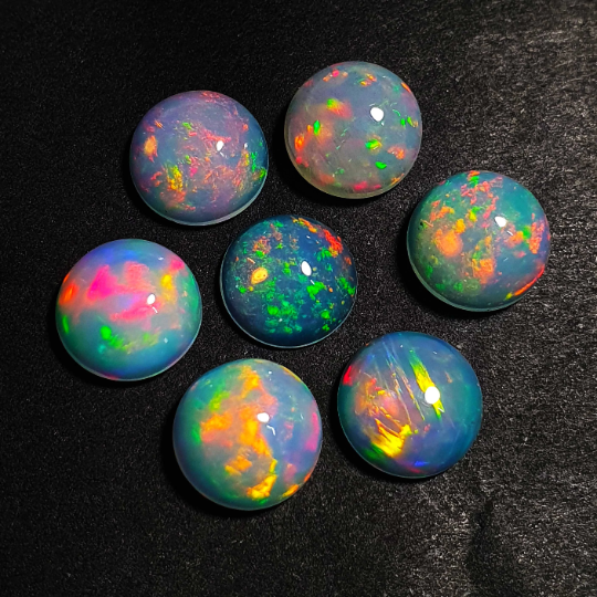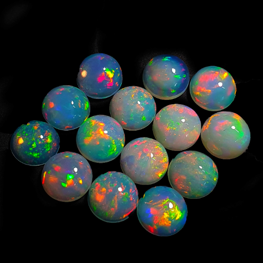 โอปอลเอธิโอเปียธรรมชาติทรงหลังเบี้ย หินโอปอลเวโลหลากสี 11 ชิ้น 7 มม. 9 กะรัต คุณภาพดี ทรงกลม โอปอลสีขาว