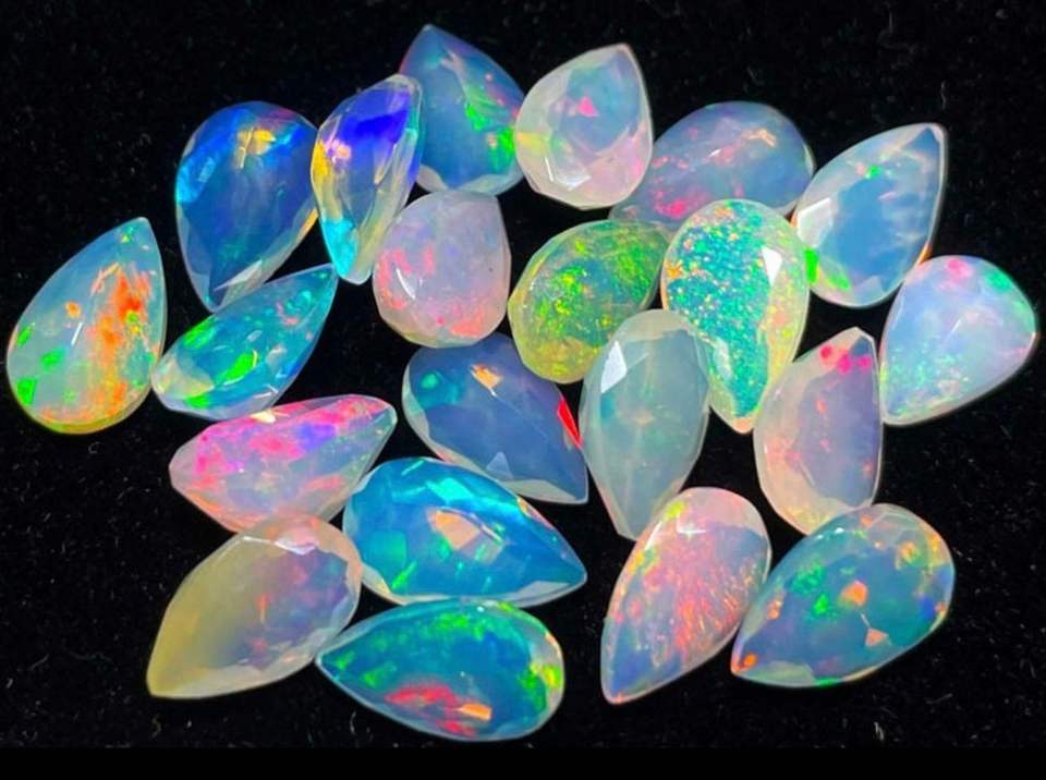 โอปอลเอธิโอเปียนธรรมชาติอัญมณีทรงเหลี่ยมเพชรพลอยสำหรับทำเครื่องประดับทำฐานสีขาวกับไฟหลายสีเขียว