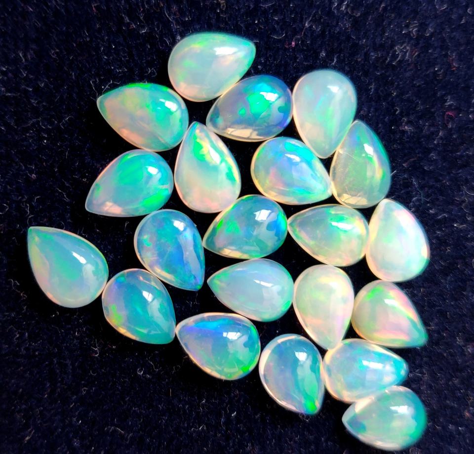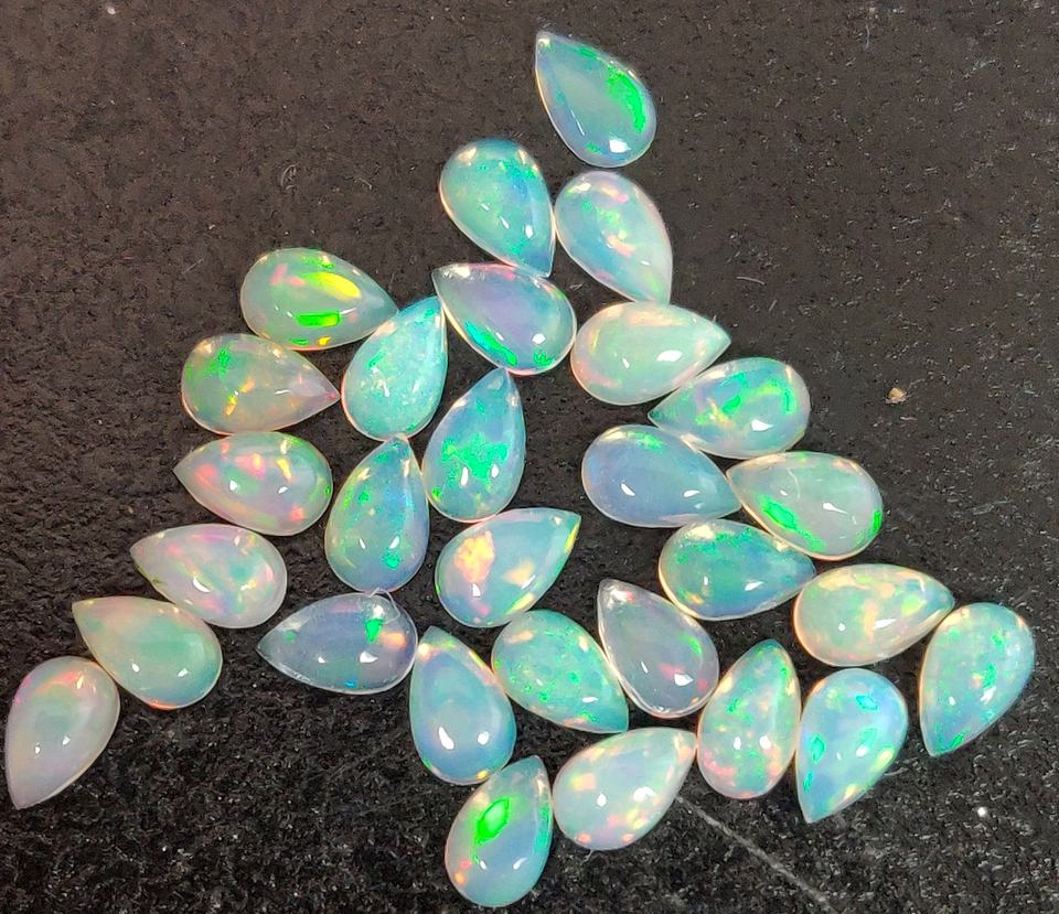 ลูกแพร์โอปอลเอธิโอเปียนธรรมชาติ5x7มม. หลังแบนหินอัญมณีทรงหลังเรียบ