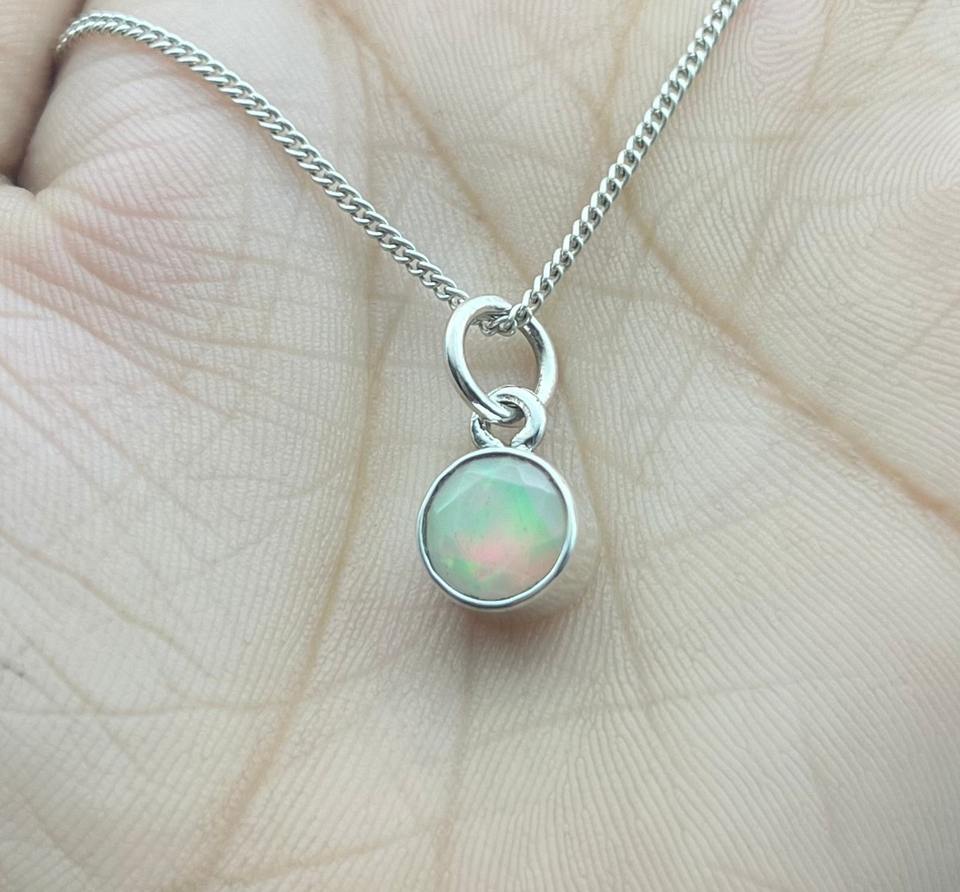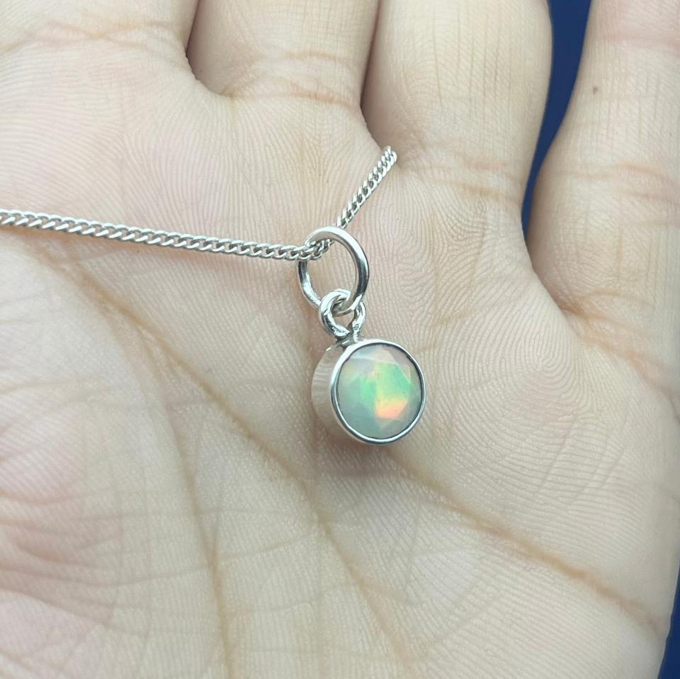 จี้925เงินสเตอร์ลิงโบโฮทำด้วยมืออัญมณีโอปอลเอธิโอเปียธรรมชาติที่ตั้งฐานแบบหนามเตยสง่างามสำหรับเธอ