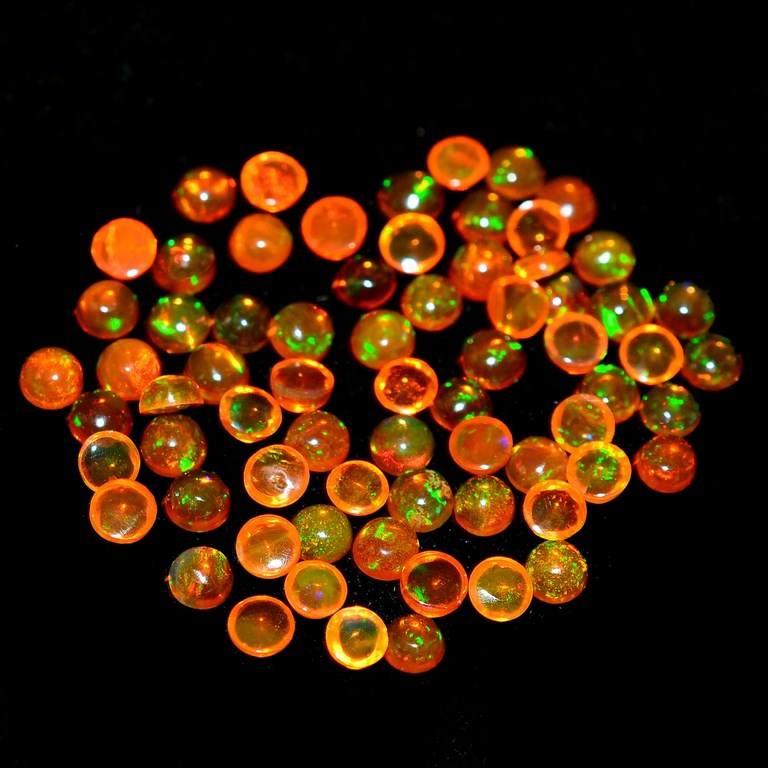 โอปอลสีส้มเอธิโอเปียธรรมชาติ ขนาด 5 มม. รูปทรงกลมเจียระไนแบบบริลเลียนท์ ผ่านการอบความร้อน แบบหลวม สำหรับทำเครื่องประดับ พร้อมคุณสมบัติการเปลี่ยนสี