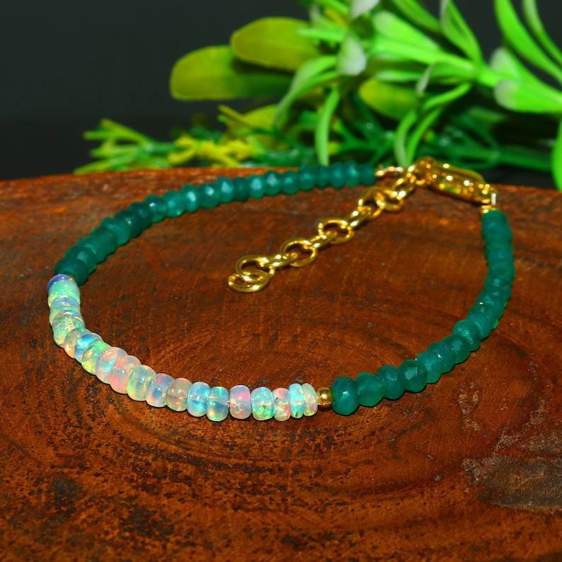 ชื่อสินค้า:สร้อยข้อมือลูกปัดโอปอลไฟเอธิโอเปียและโอนิกซ์สีเขียว
