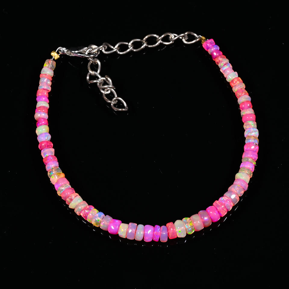 กำไลไฟโอปอลจากเอธิโอเปียนธรรมชาติลูกปัดสีชมพูเงางามอัญมณีขี้เล่นผลิตภัณฑ์อัญมณีหลวม