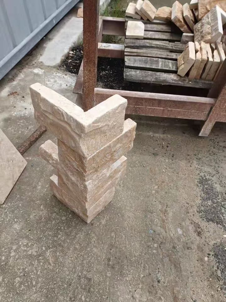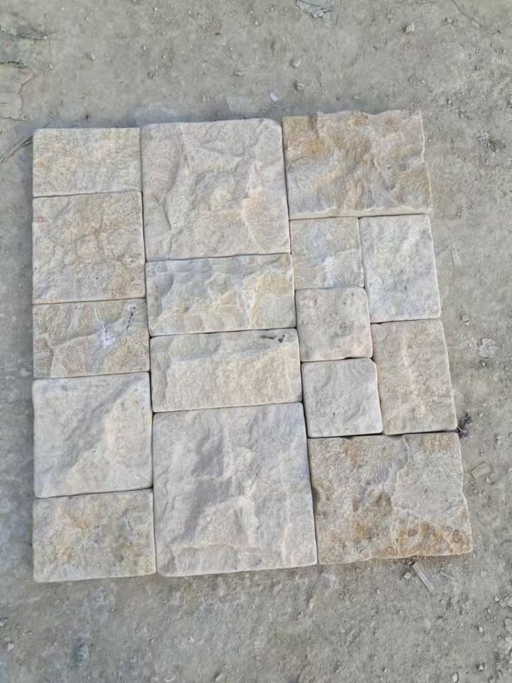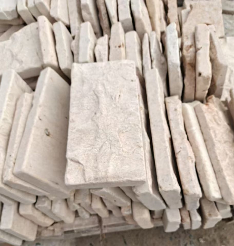 หินวีเนียร์บางแบบธรรมชาติสีเบจคลาสสิก รูปทรงสี่เหลี่ยมจัตุรัสและสี่เหลี่ยมผืนผ้า สำหรับบุผนัง