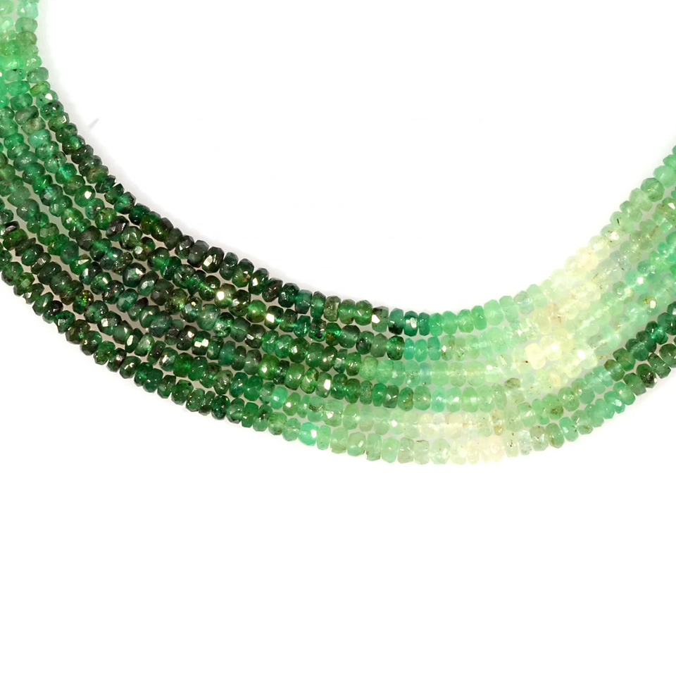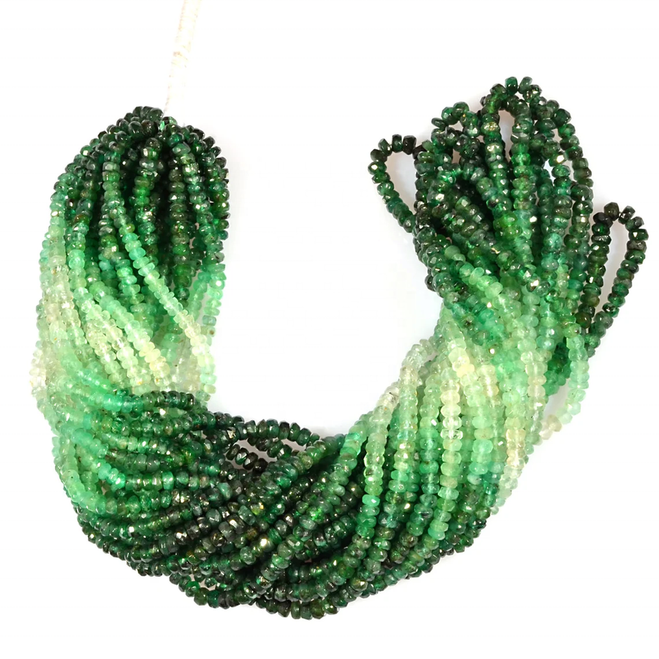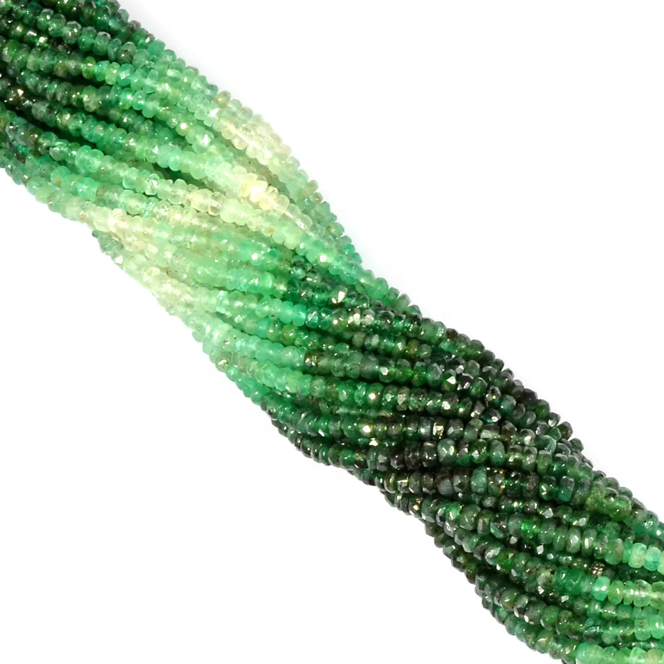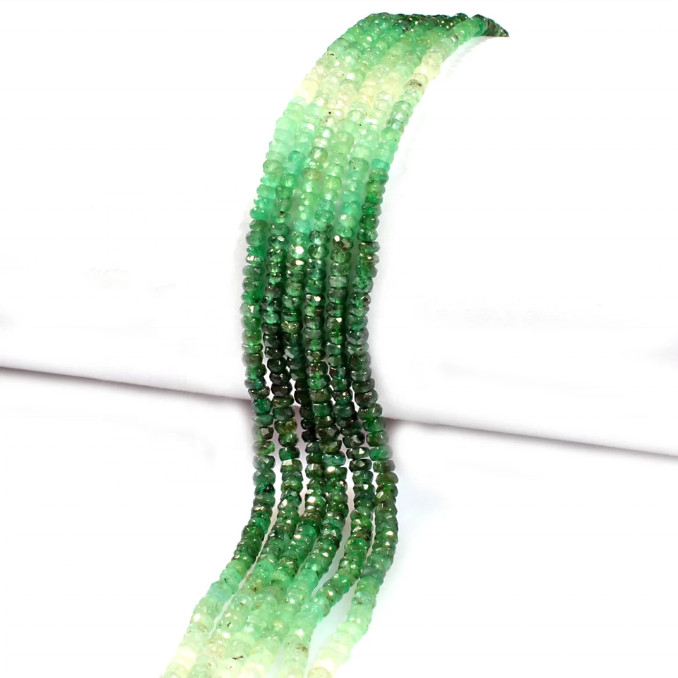 ลูกปัดมรกตทรงรอนเดลเหลี่ยมเพชรพลอยธรรมชาติ ขนาด 3-4 มม. ความยาว 16 นิ้ว สำหรับทำเครื่องประดับ