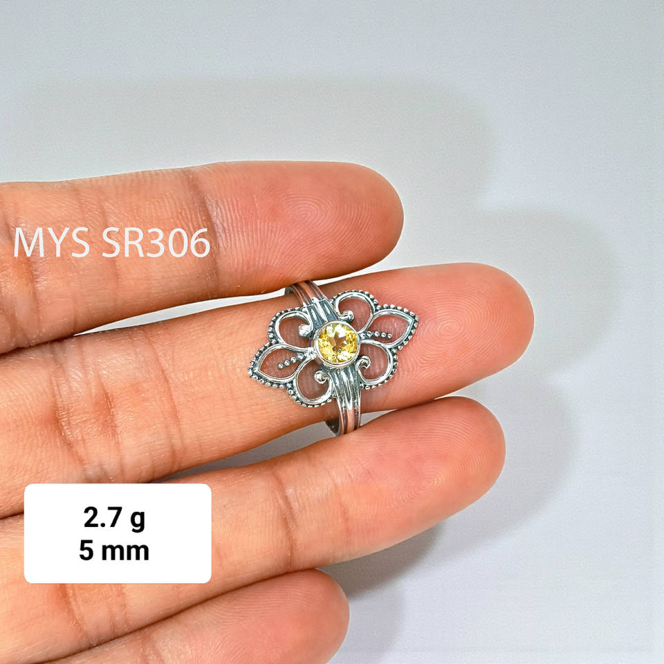 แหวนเงินแท้ 925 ประดับพลอยซิทรินเจียระไนทรงเหลี่ยม ทำด้วยมือ