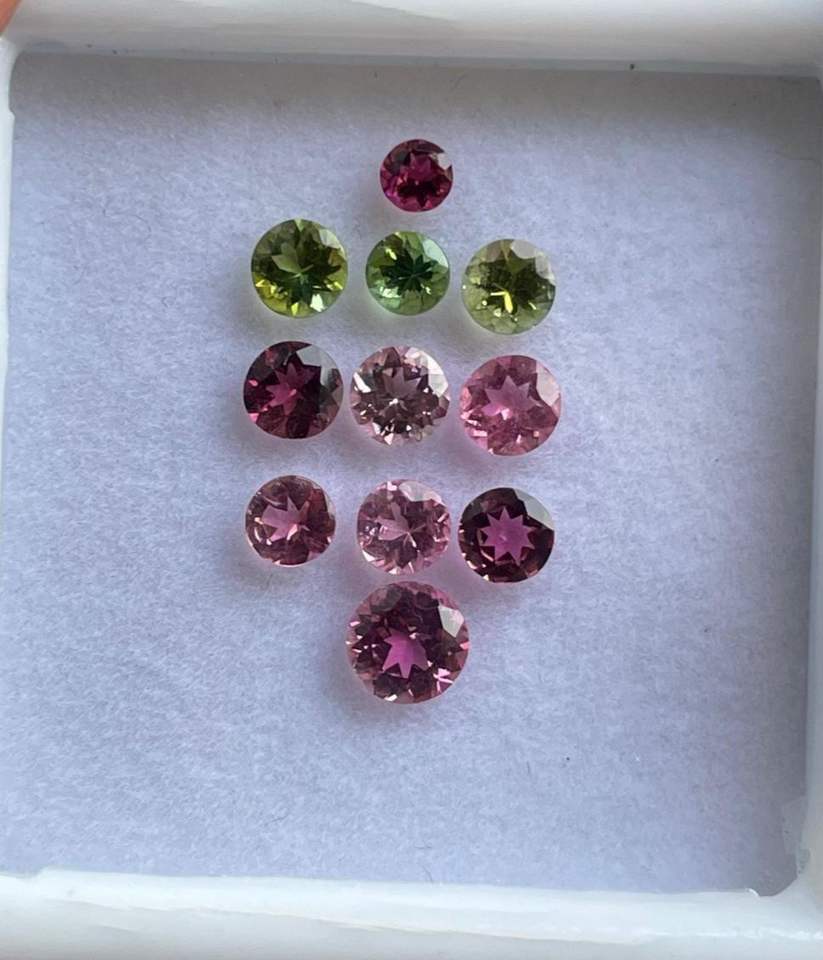 พลอยทัวร์มาลีนเจียระไนแบบหลายสีตามธรรมชาติ
