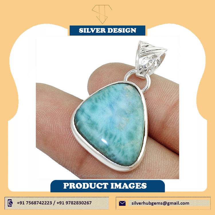 จี้เงินแท้ 925 ประดับพลอยลาร์ิมาทรงแฟนซีธรรมชาติ ตัวเรือนเงิน ดีไซน์หรูหรา ขายส่ง ของขวัญสำหรับเธอ
