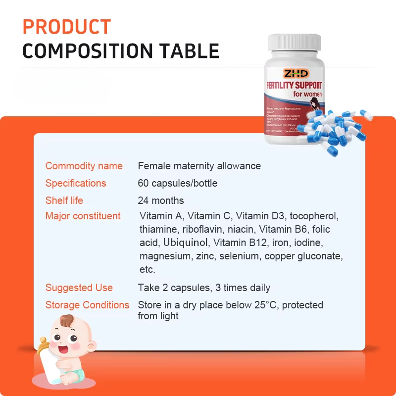 อาหารเสริมเพิ่มความอุดมสมบูรณ์ของเพศหญิงตามธรรมชาติสำหรับการตั้งครรภ์บุตรแฝด พร้อมกรดโฟลิกและโคเควอไนซ์ ผู้ผลิตแคปซูลแบบ OEM รับผลิตภายใต้แบรนด์ของลูกค้า