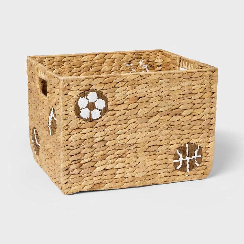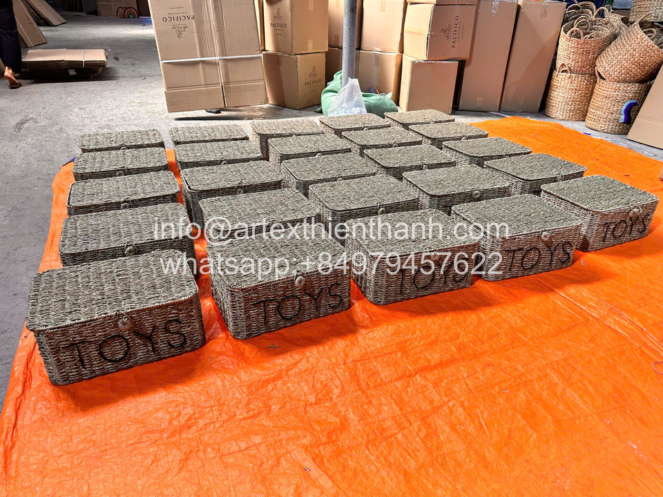 ตะกร้าใยธรรมชาติขายส่ง น่ารักและเป็นมิตรกับสิ่งแวดล้อม สำหรับจัดระเบียบห้องเด็ก ตะกร้าสี่เหลี่ยมสานจากวัสดุธรรมชาติสำหรับเด็กเล่นกีฬา