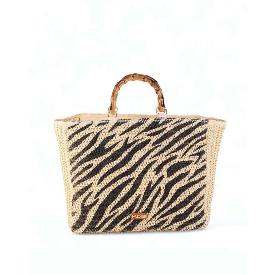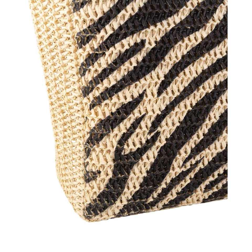 กระเป๋าถือใยธรรมชาติสำหรับเด็กผู้หญิง สีลายม้าลาย กระเป๋าสะพายลำลองมีซิป สายสะพายสองเส้น ลายโลโก้ ตกแต่งลายดอกไม้ ใช้ได้ทุกวัน
