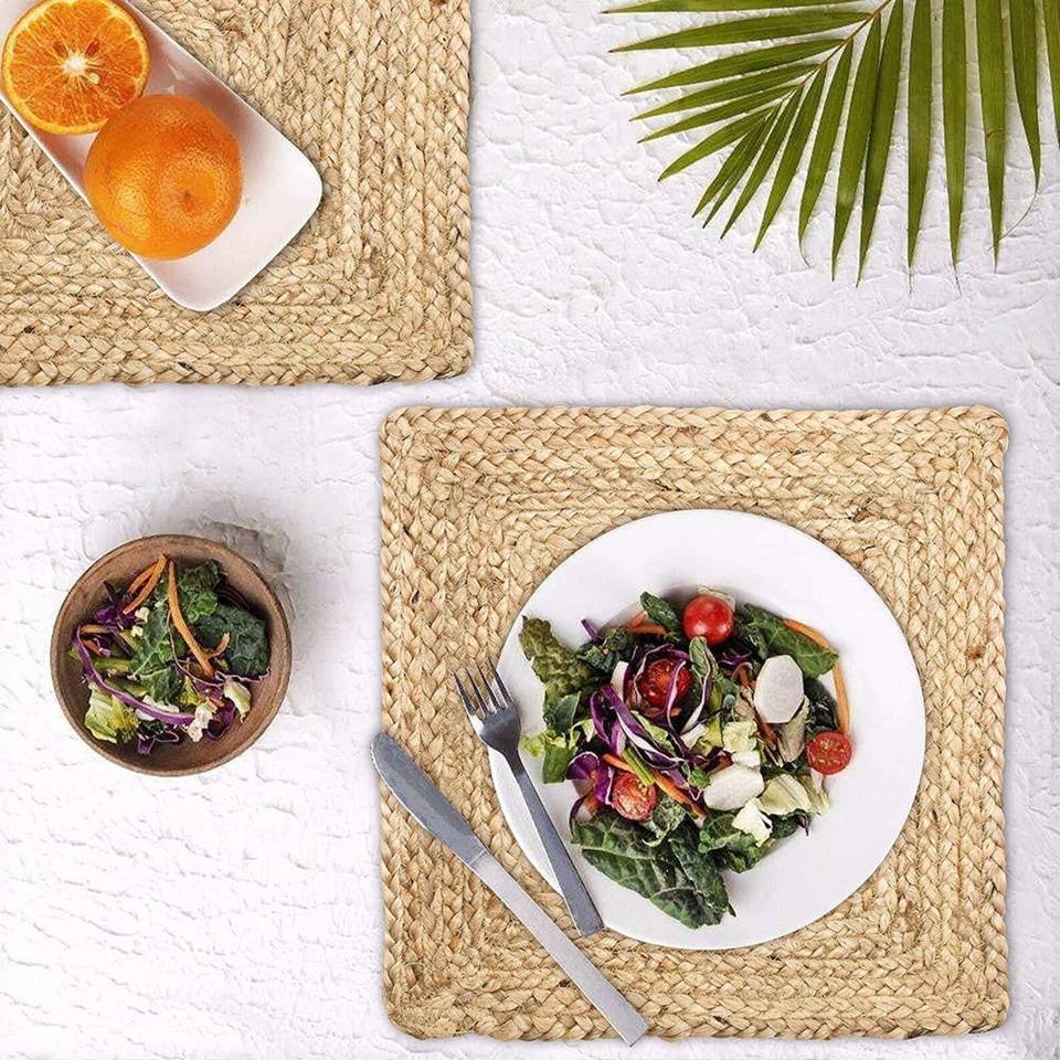 ชุดผ้าปูโต๊ะถักมือปอกระเจาทำจากเส้นใยธรรมชาติ,แผ่นรองบนโต๊ะชาวนาแนววินเทจชนบทสำหรับงานปาร์ตี้