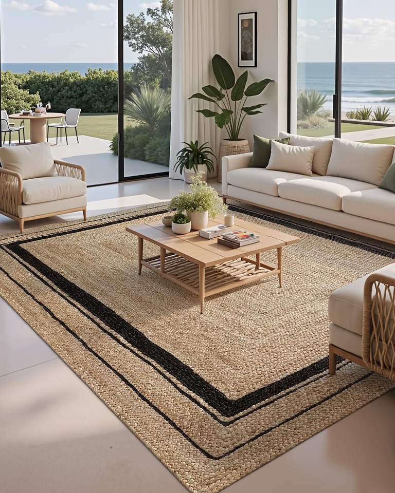 พรมใยปอกระเจาธรรมชาติ - ขนาดสั่งทำได้ ทำด้วยมือ ใช้ได้สองด้าน ยั่งยืน ทนทาน สไตล์บ้านเรือน ทรงกลม โบฮีเมียน ขนหนาปานกลาง