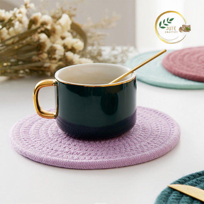 แผ่นปูปอกระเจาเส้นใยธรรมชาติแผ่นรองจานสำหรับรับประทานอาหารที่เป็นมิตรต่อสิ่งแวดล้อมทนทานสำหรับตกแต่งห้องครัวและโต๊ะ