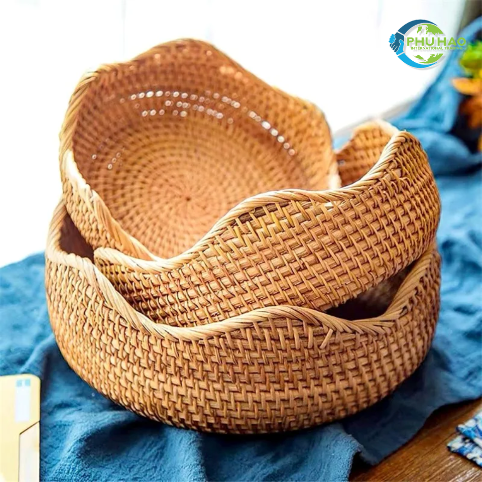 ตะกร้าหวายสานจากเส้นใยธรรมชาติสำหรับเก็บผลไม้งานศิลปะจากเวียดนามเหมาะสำหรับจัดเก็บในห้องครัวและตกแต่งบ้าน