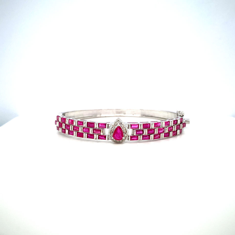 สร้อยข้อมือเทนนิสพลอยทับทิมละเอียดธรรมชาติสร้อยข้อมือเทนนิสสีชมพูเงินสร้อยข้อมือสำหรับผู้หญิง